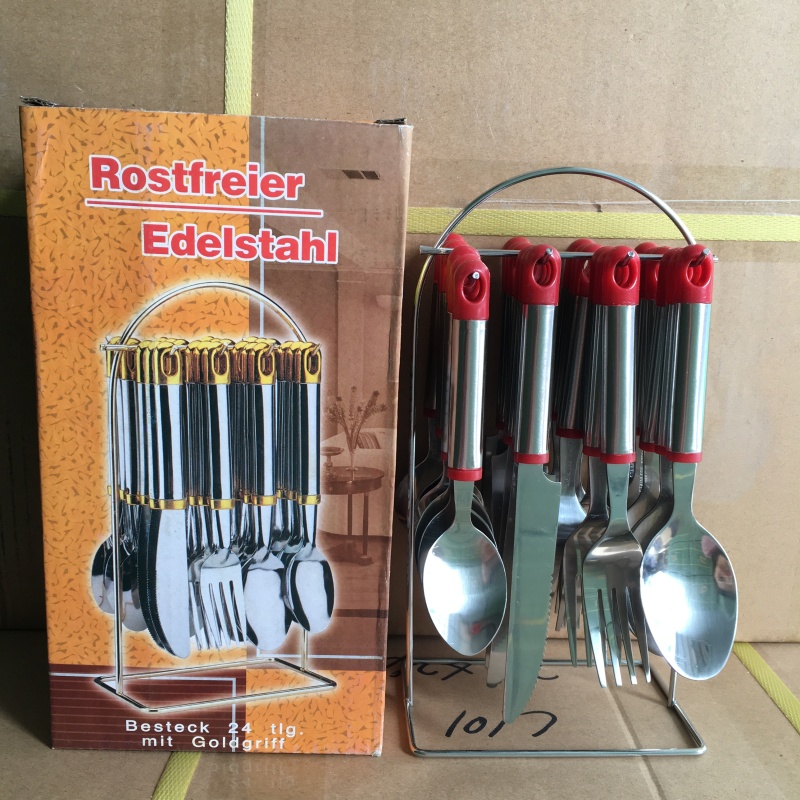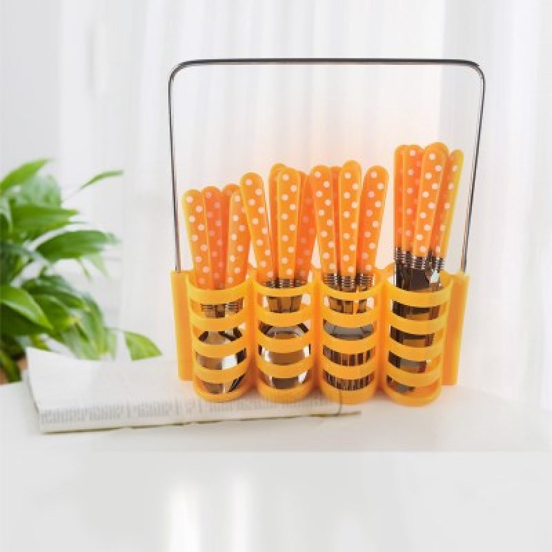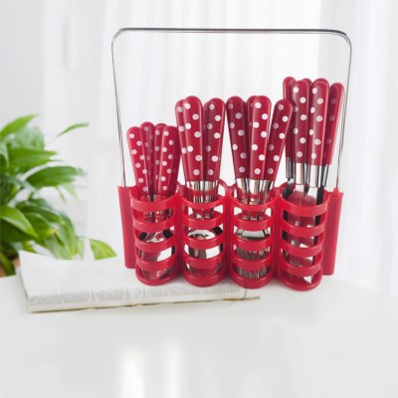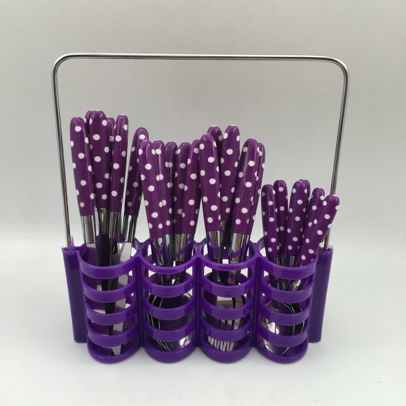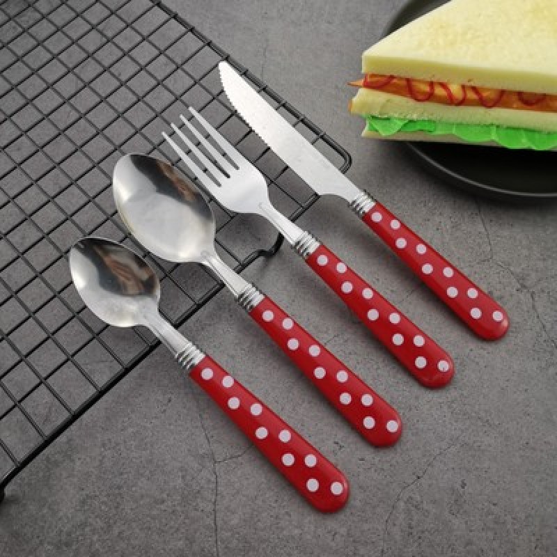 Indonesia wholesale plastic tableware polka dot set stainless steel knives, forks and spoons