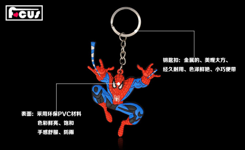 creative ornament spider-man pcv soft rubber cartoon character personalized custom keychain pendant