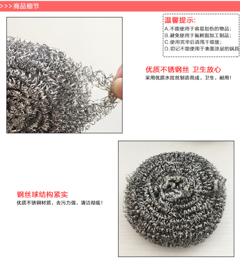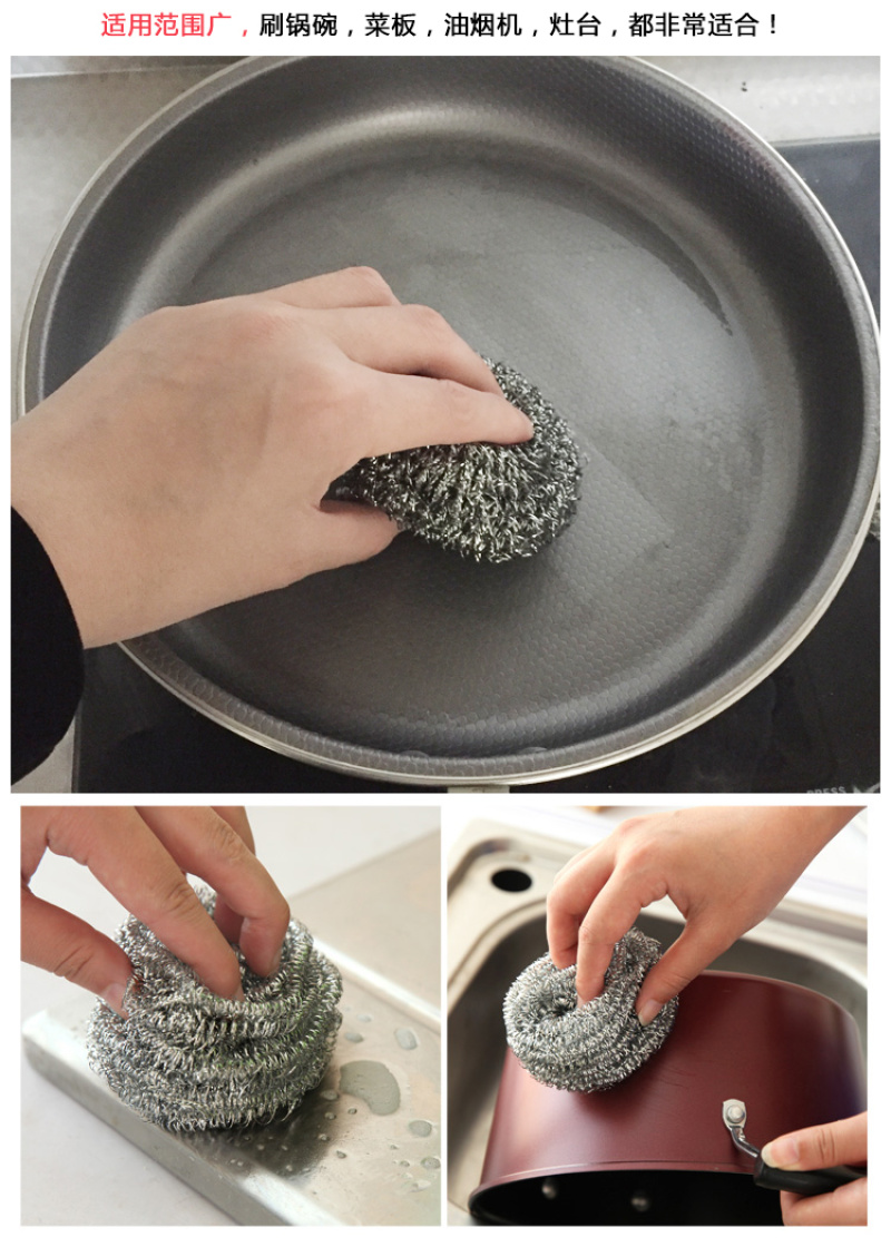 pure stainless steel strong kitchen dishwashing decontamination brush pot artifact cleaning ball steel wire ball