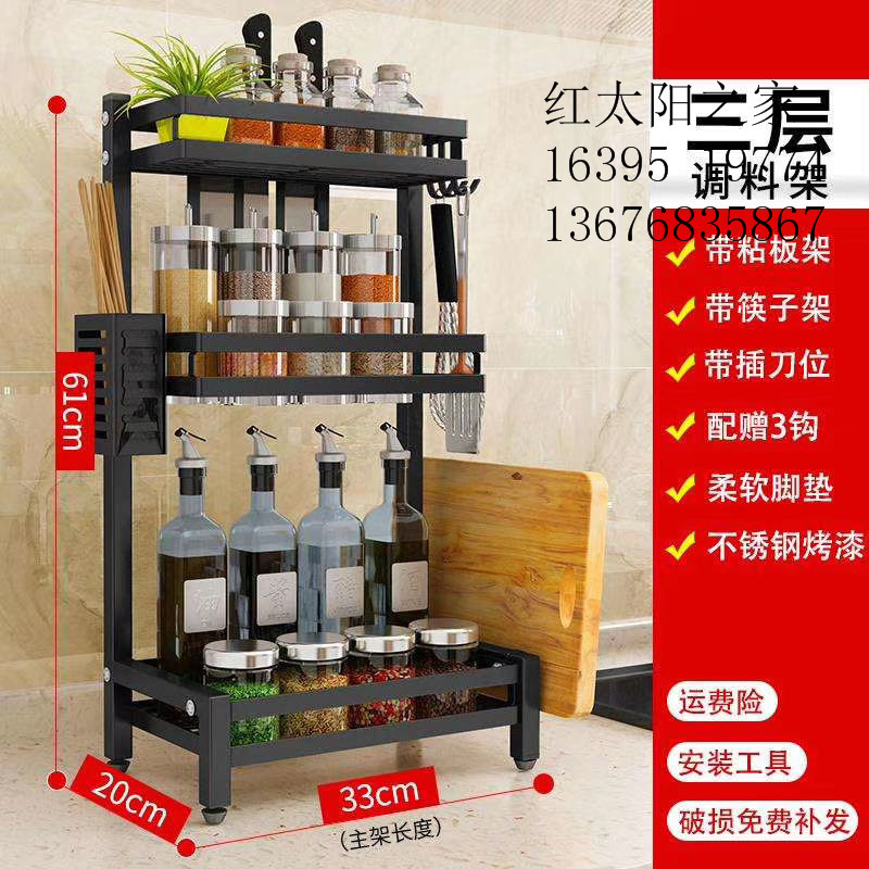 stainless steel kitchen condiment rack multi-layer wall-mounted storage tool seasoning bottle oblique seasoning rack