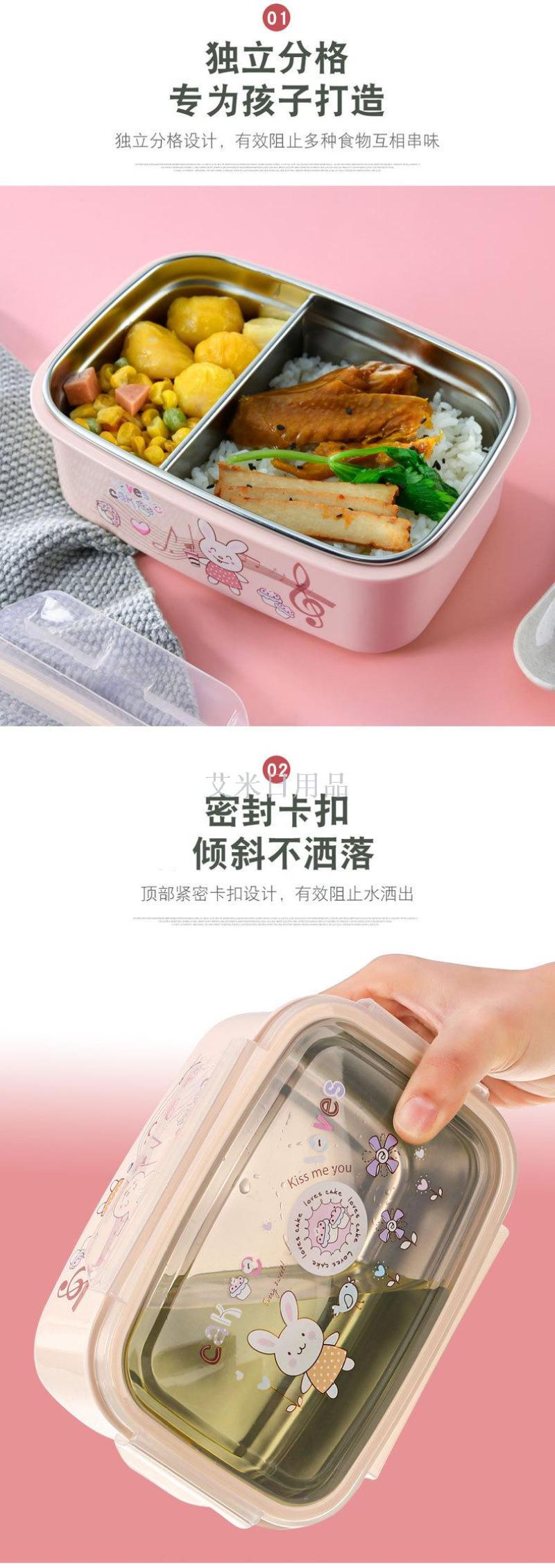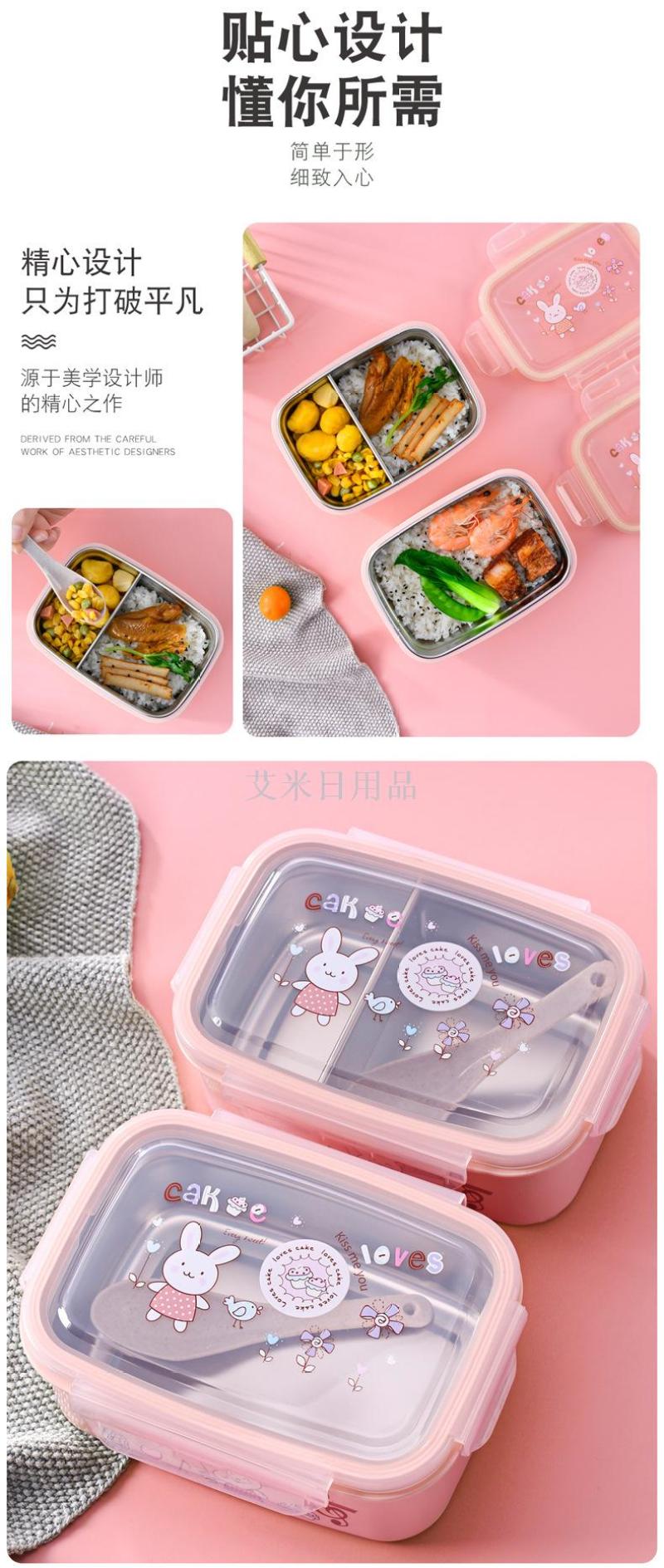 Mx-5711 single-layer stainless steel children's cartoon lunch box Portable rabbit lunch box Student Chinese crisper
