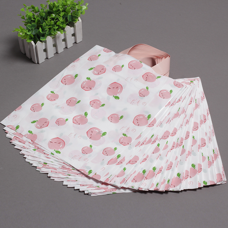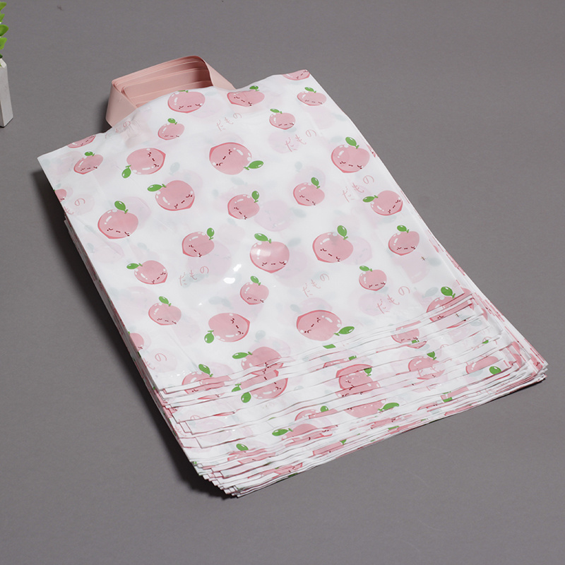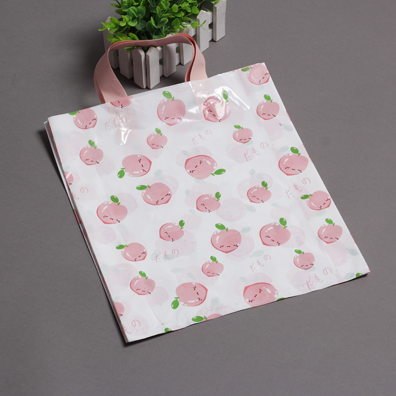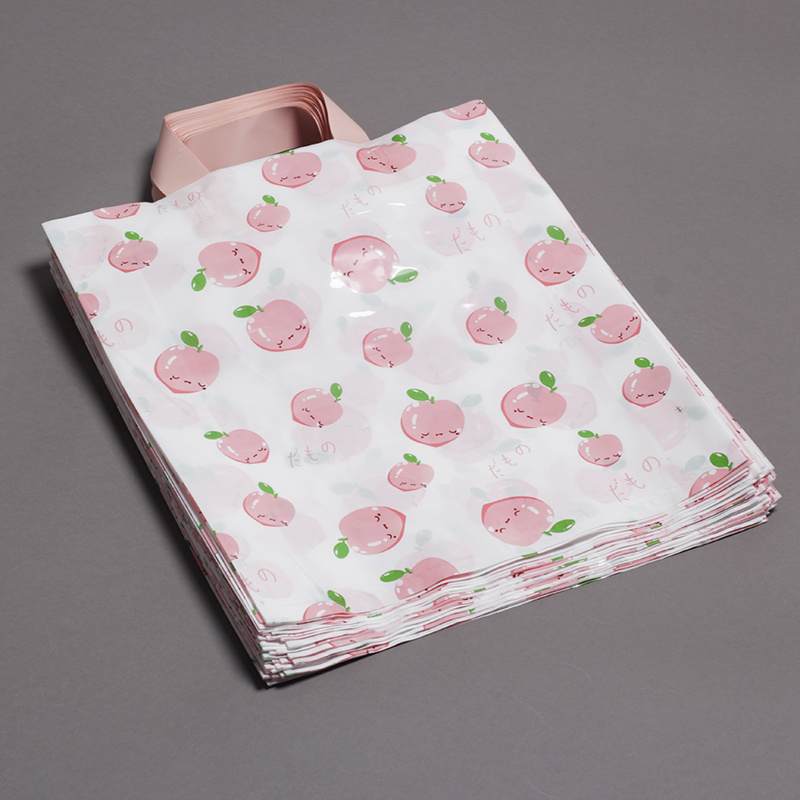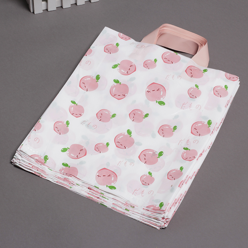 Customized plastic handbags for clothing, PE bags with cute peach designs, gift packaging bags, shopping bags for children's clothing stores, and in-stock bags.
