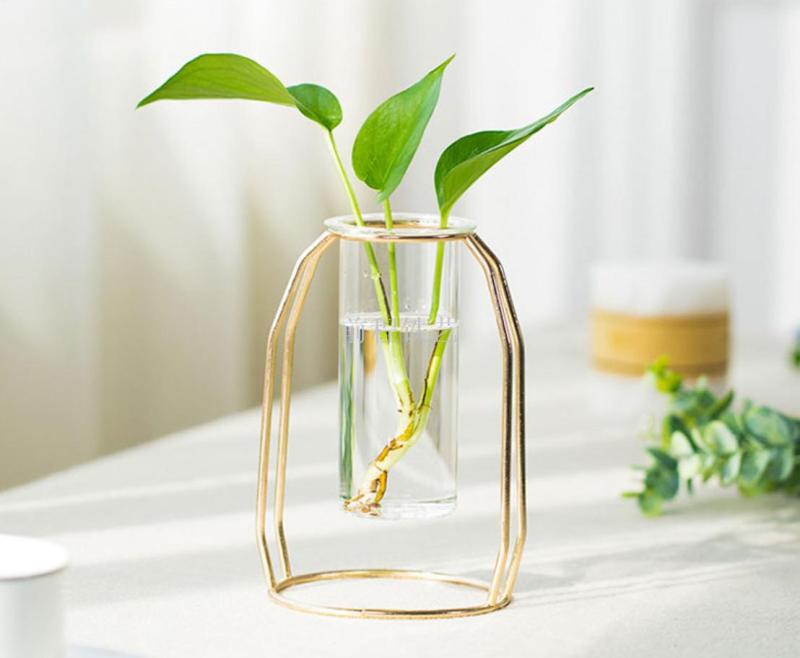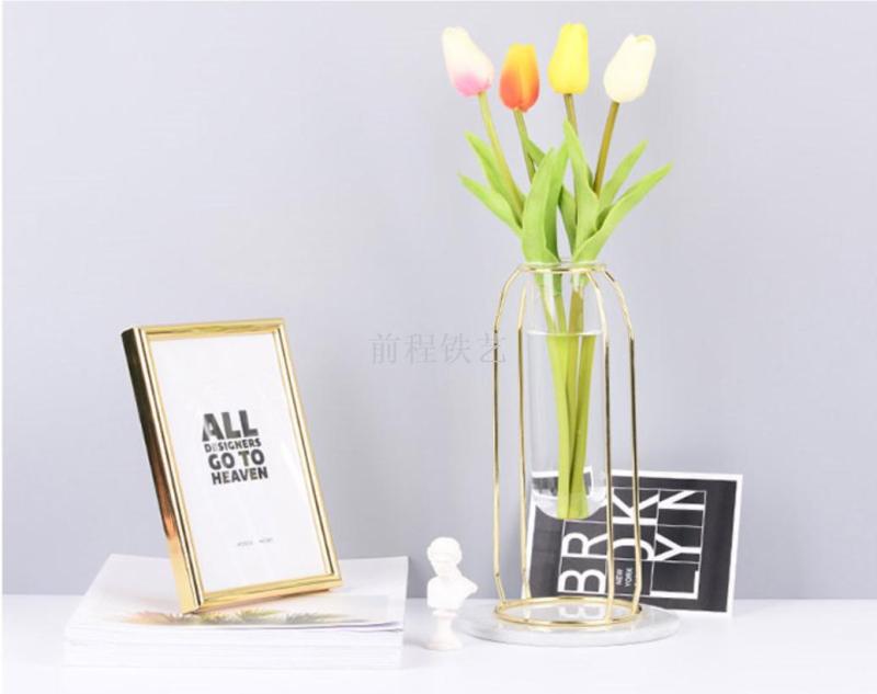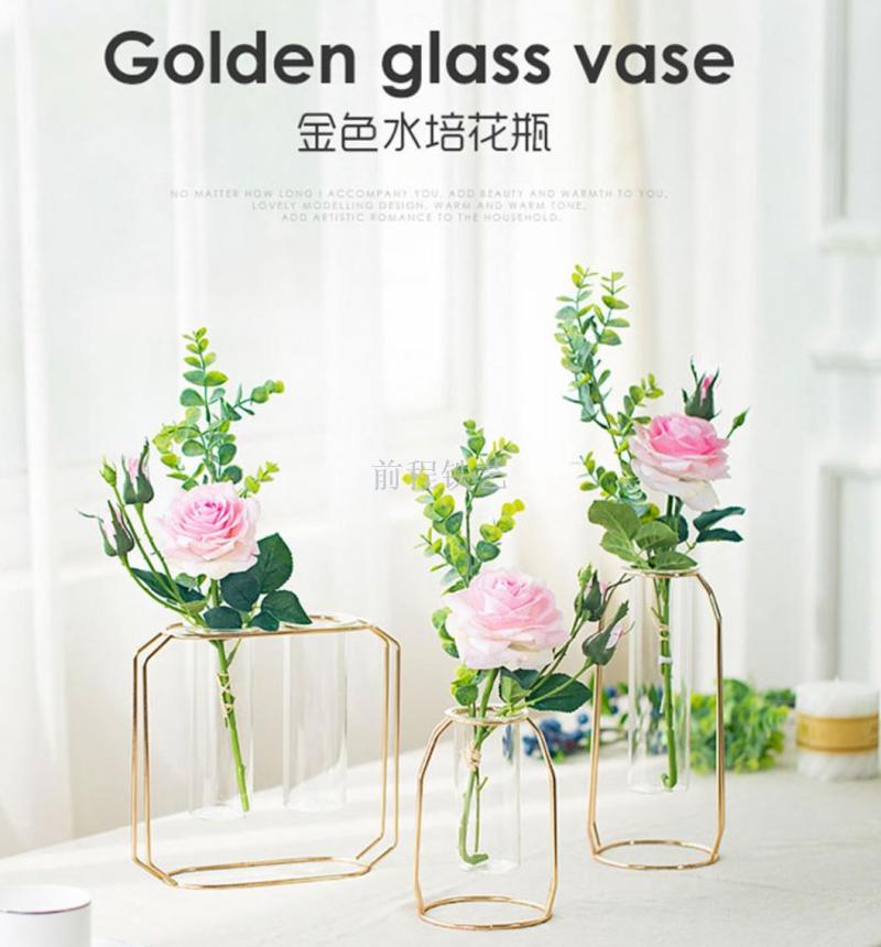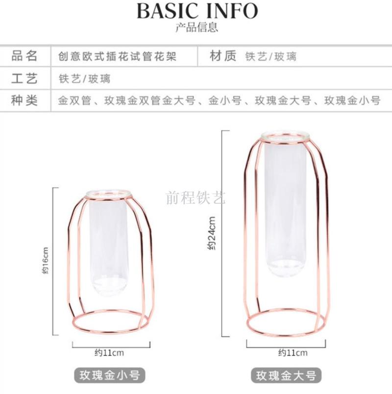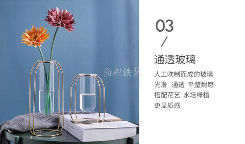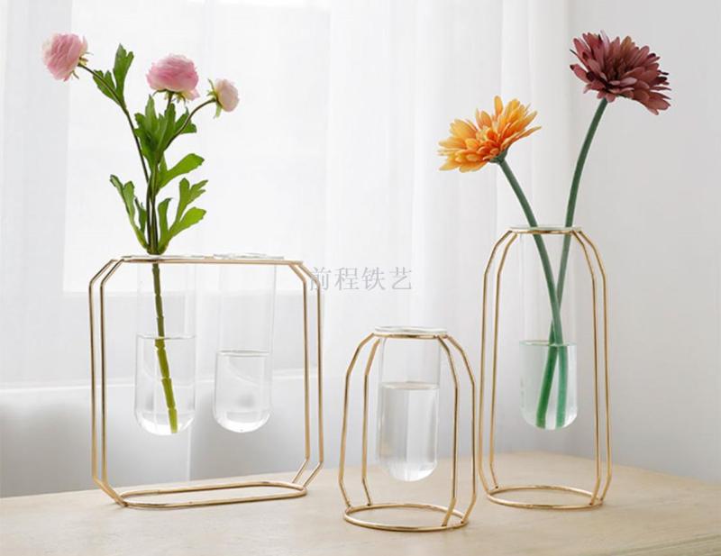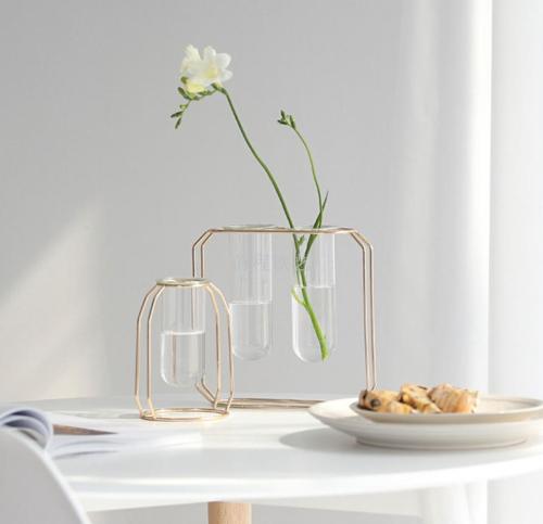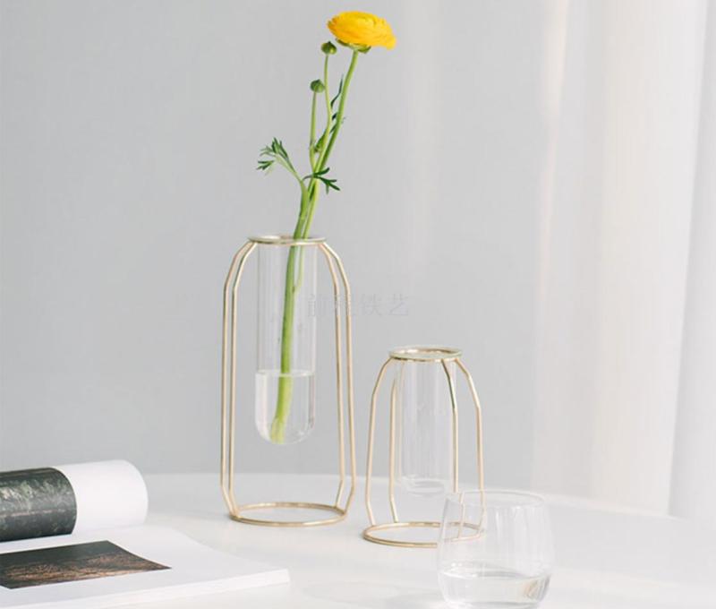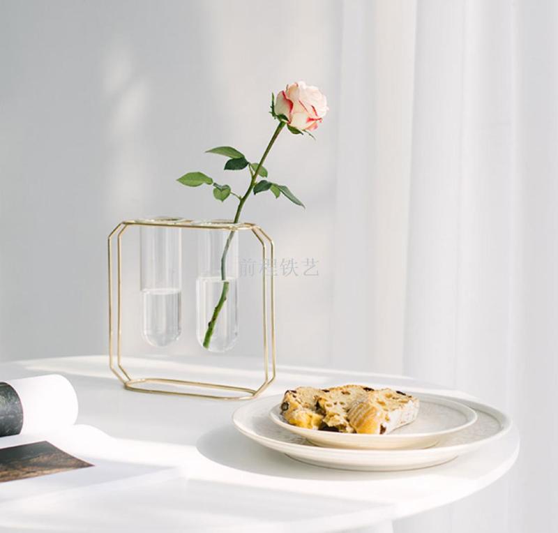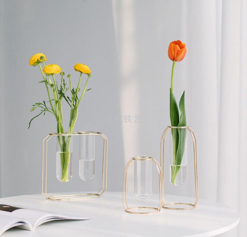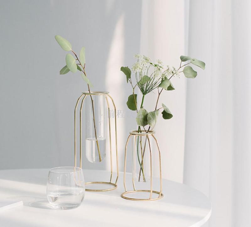 high-end entry lux electroplated iron nordic ins hydroponic glass test tube vase flower arrangement decoration indoor living room furnishings