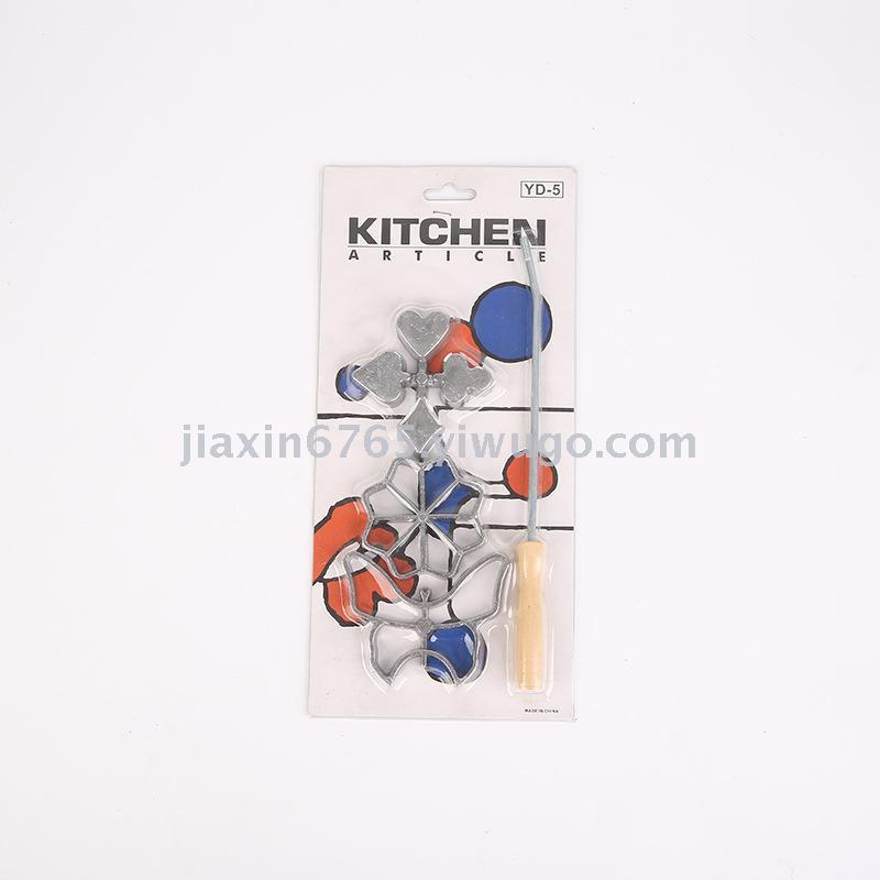 household kitchen gadget manual cookie cutter flower type wooden handle baking mold