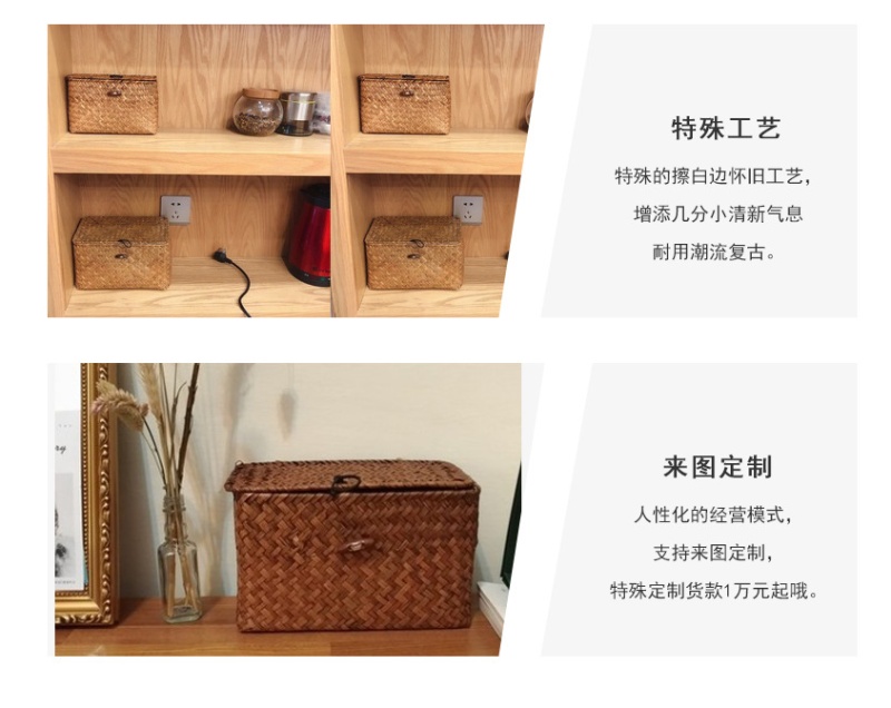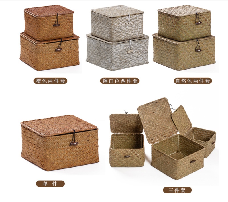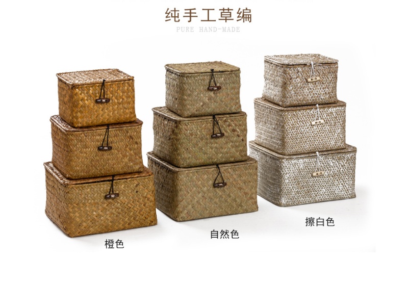Desktop Cosmetics Storage Medicine Box Storage Box Crafts Seaweed Woven Basket