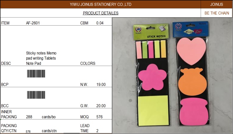 Sticky notes Memo pad writing Tablets Note Pad AF-2601