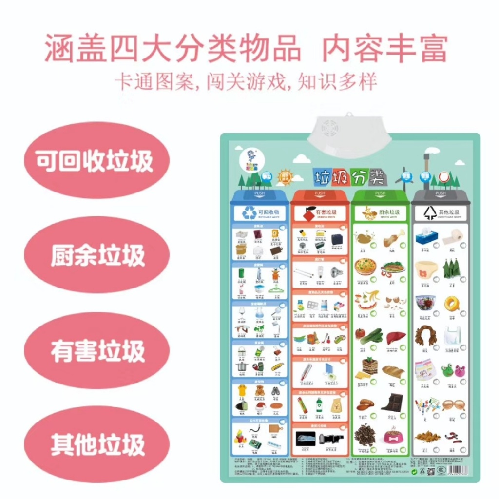 Leleyu Garbage Classification Audio Wall Chart Kindergarten Must-Enter Red Mall