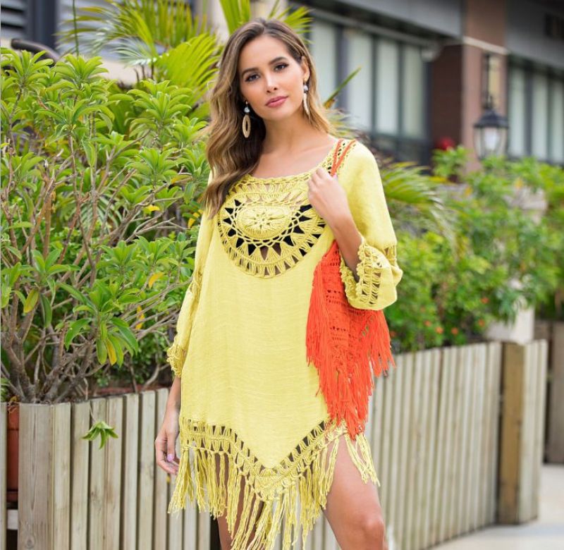 Bikini Foreign Trade new sexy Pure color hand-Crocheted Tassel Sunblock swimsuit over blouse Beachwear