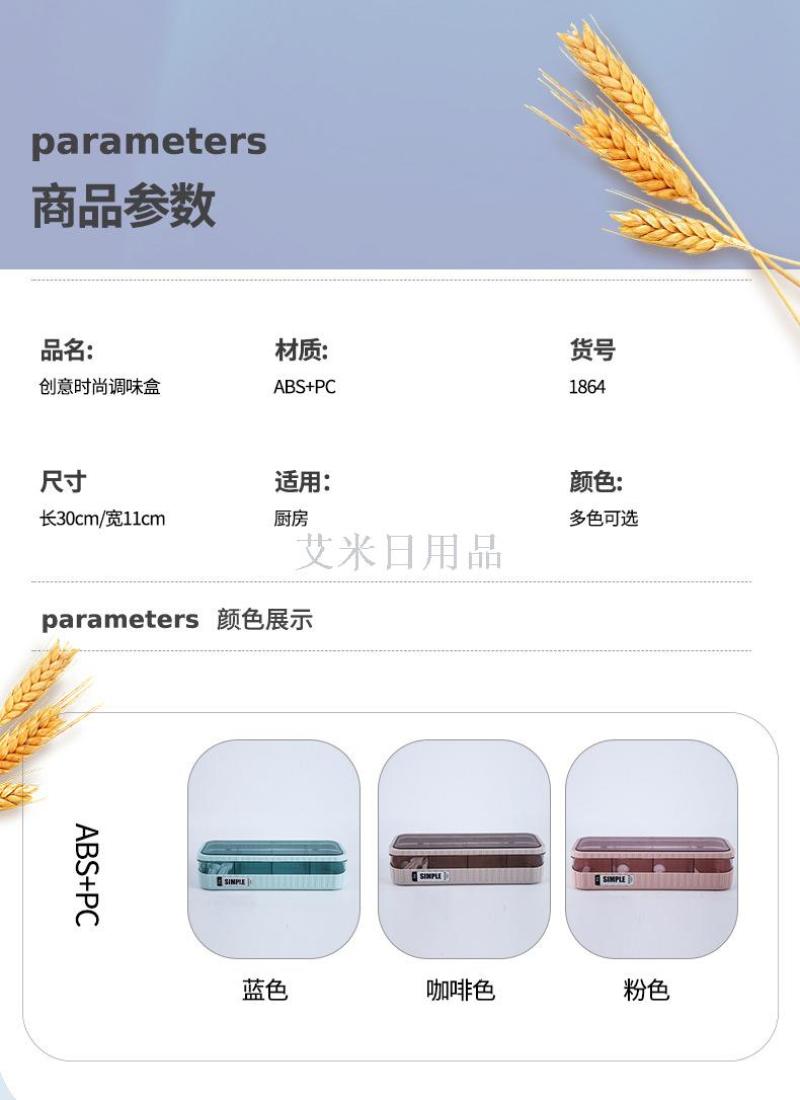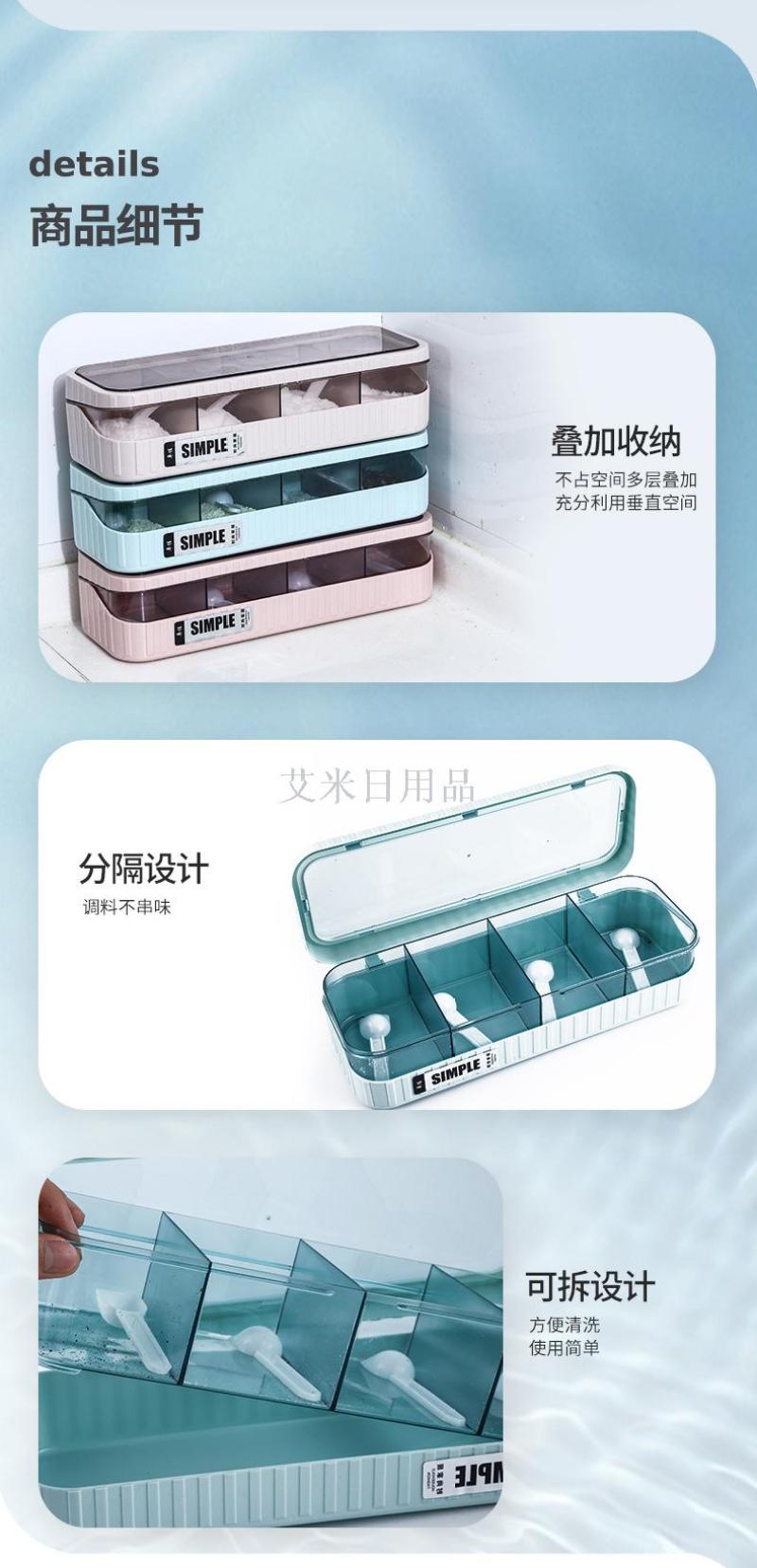 Zj-1864 new kitchen creative fashion seasoning box FOOD seasoning PC storage box simple separation seasoning bottle