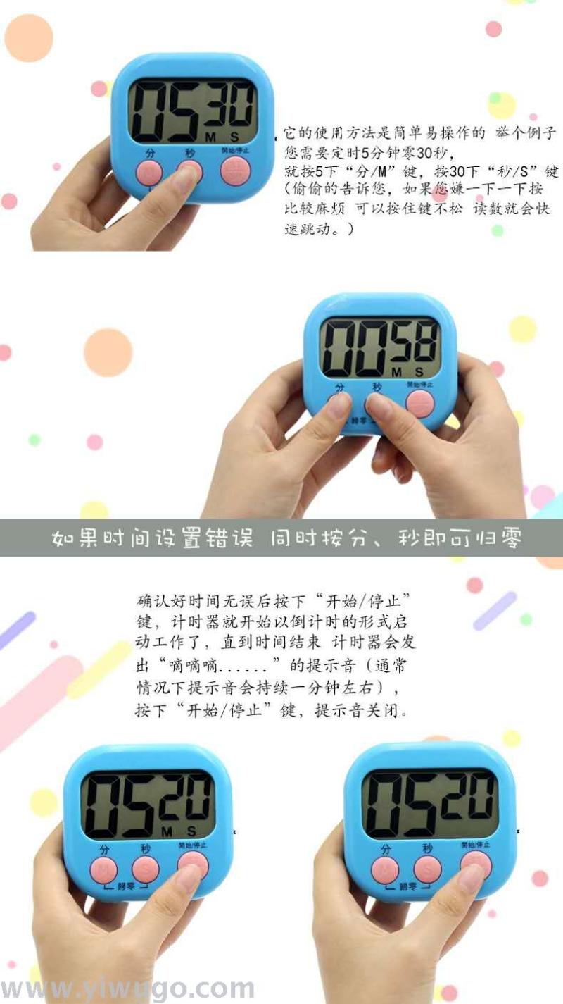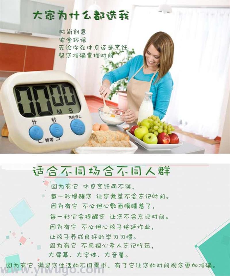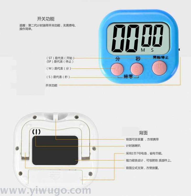 Professional Production Kitchen Reminder Function Alarm Clock Electronic Timer Student Time Management Timer Chinese and English