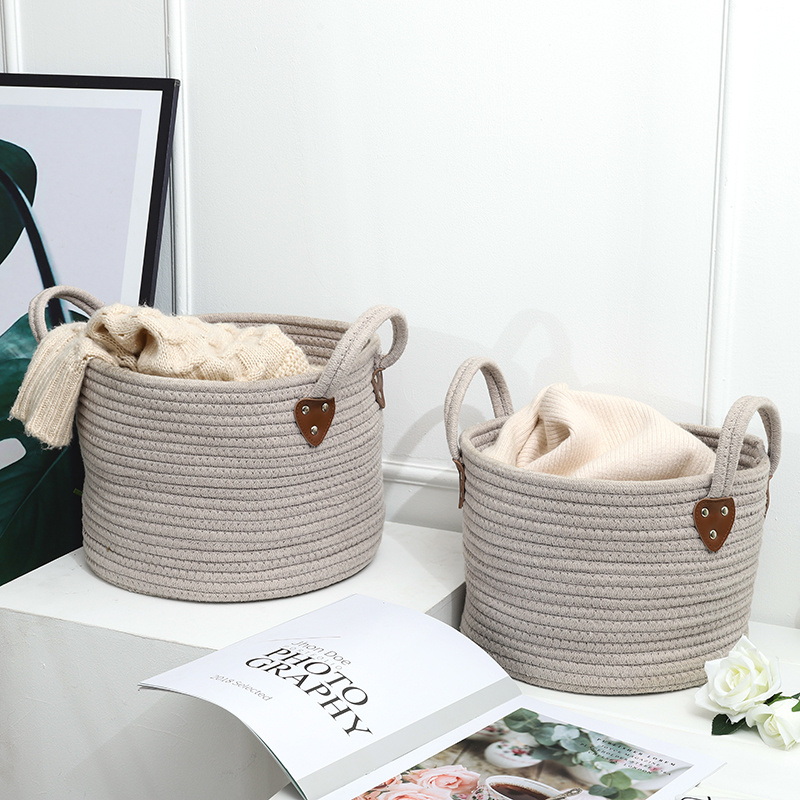 exquisite nordic style handle laundry basket cotton thread storage barrel clothes box storage basket 中文版