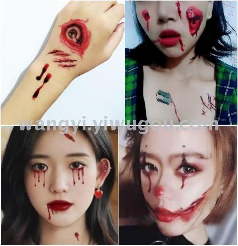 Product Name: Halloween Tattoo Sticker Waterproof Men and Women's Face Stickers Horror Gimmick Bleeding Dance Party Makeup