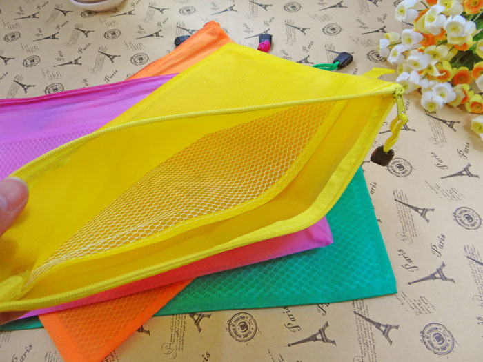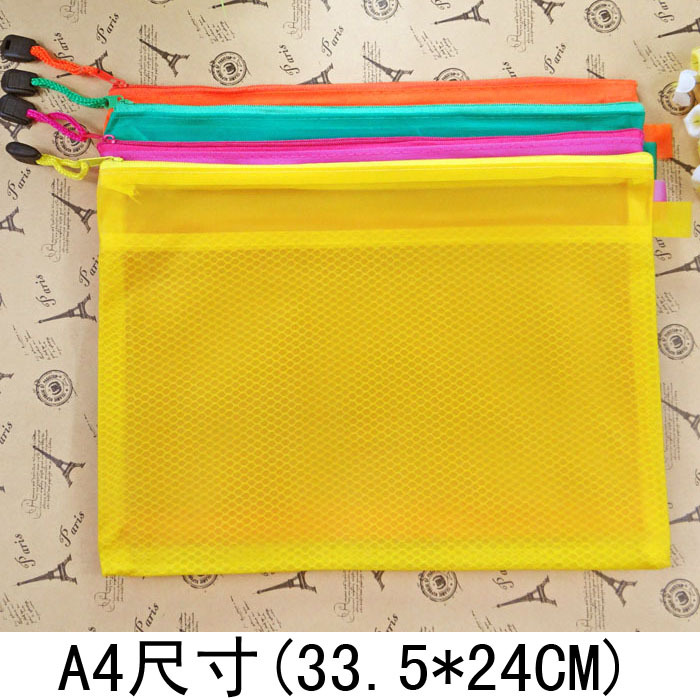 A4防水网格袋,有防水功能,让资料更好的保存,有三种颜色,都很漂亮哦!独特的材质,非常耐用,拉链式带手提,方便携带