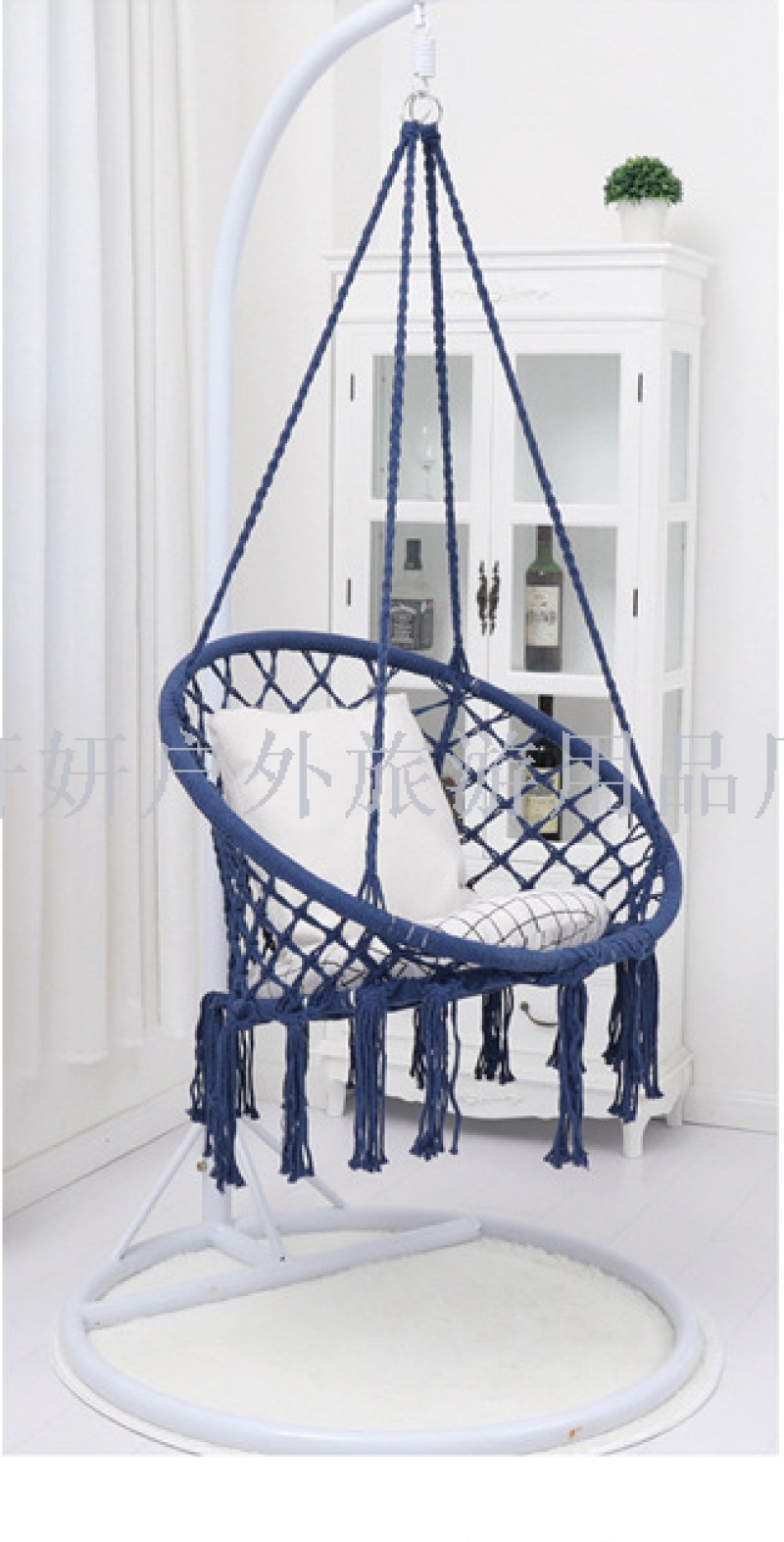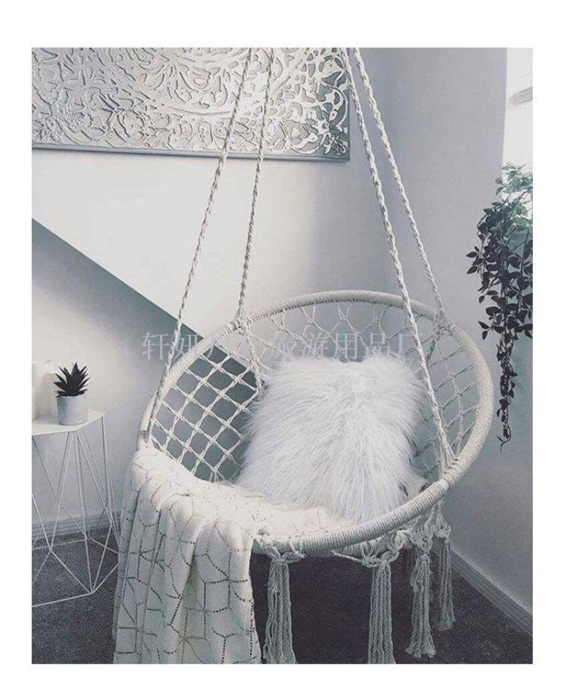 About Product:Hanging chair hammock cotton cord woven hanging basket Nordic garden outdoor swing B&B hammock circular hanging chair 50*70CM/60*80CM