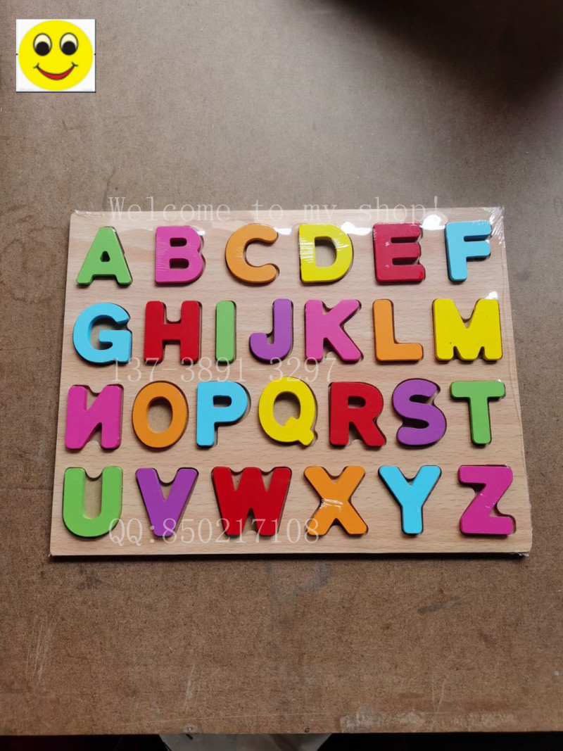 木质卡通大小写字母数字拼图积木益智玩具幼儿园画板拼图积木画板