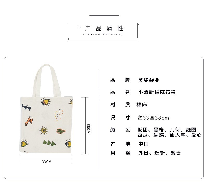 The Wholesale color printing canvas bags cartoon cotton and linen bags can be customized cotton environmental bags spot