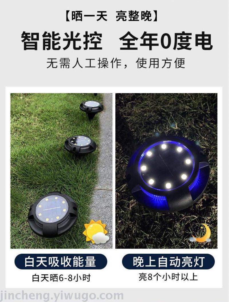 Cross-Border Solar Underground Light Outdoor Waterproof Led Pin Light round Courtyard Decorative Lawn Lamp Factory Direct Sales