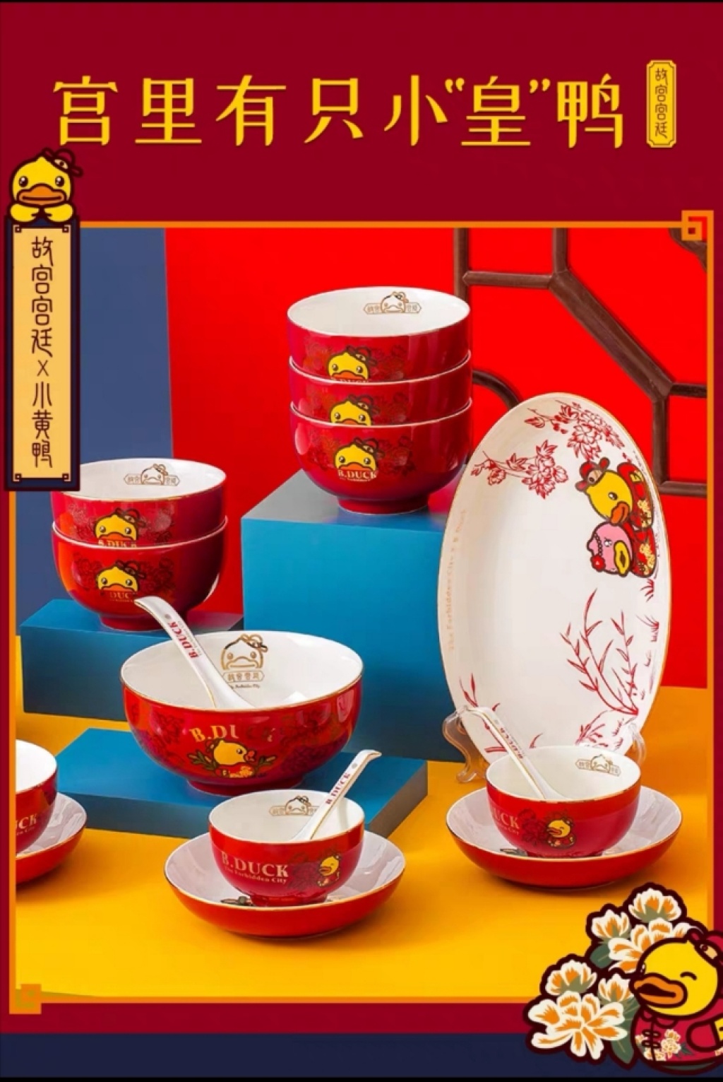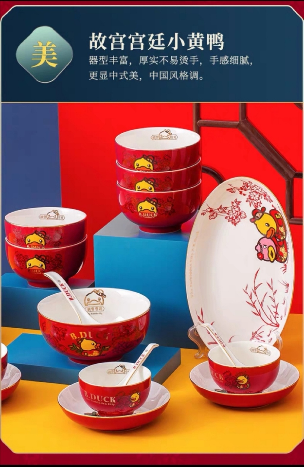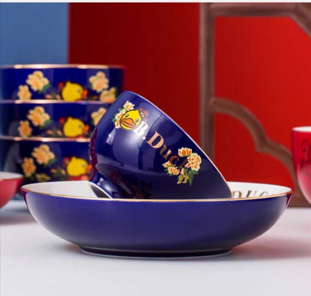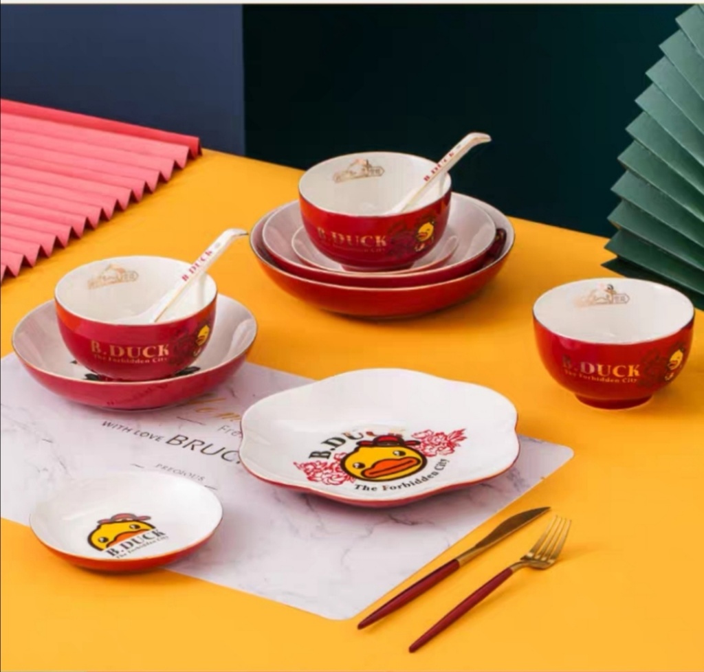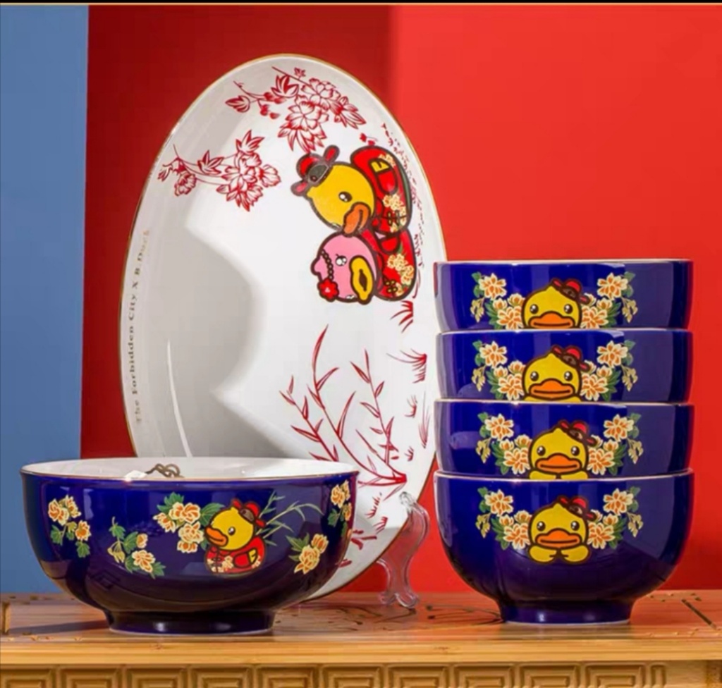 b.duck small yellow duck x palace museum's cultural and creative products joint name chinese style bowl ceramic household plate and bowl ceramic tableware exquisite