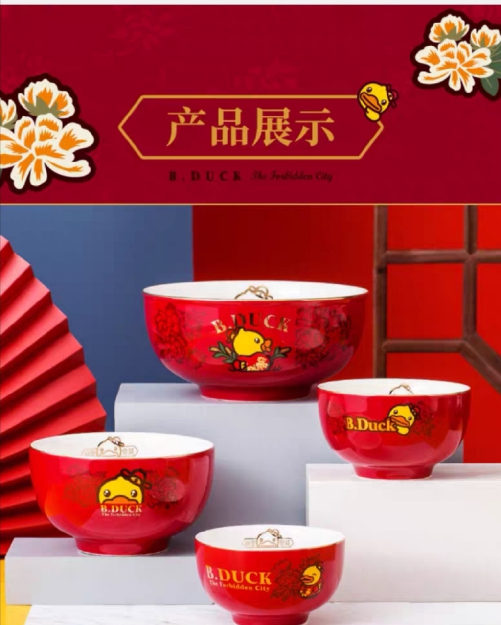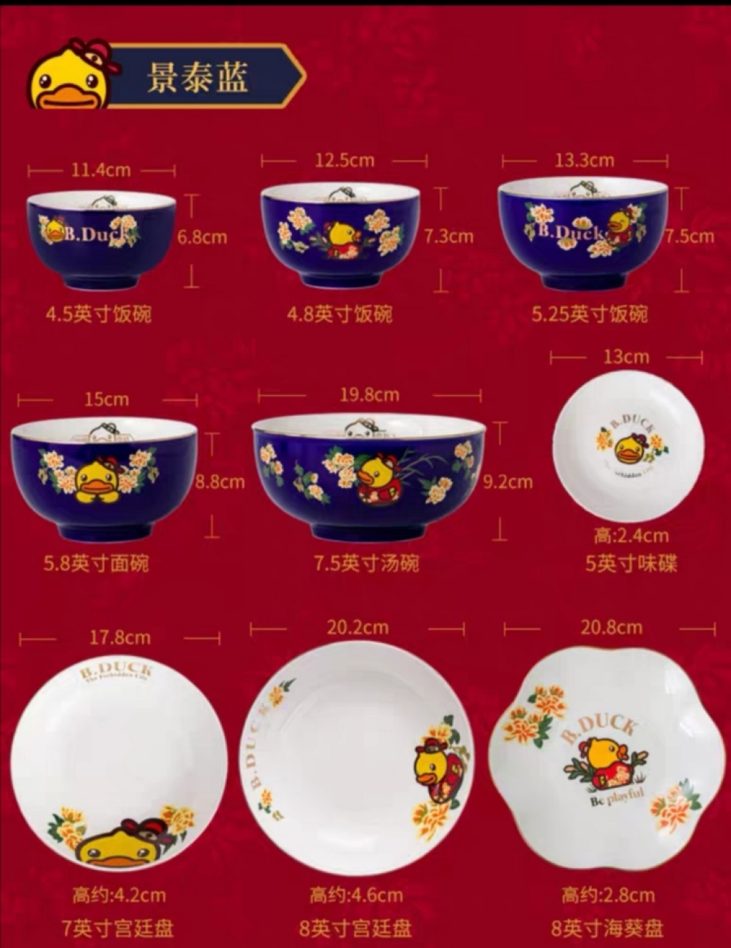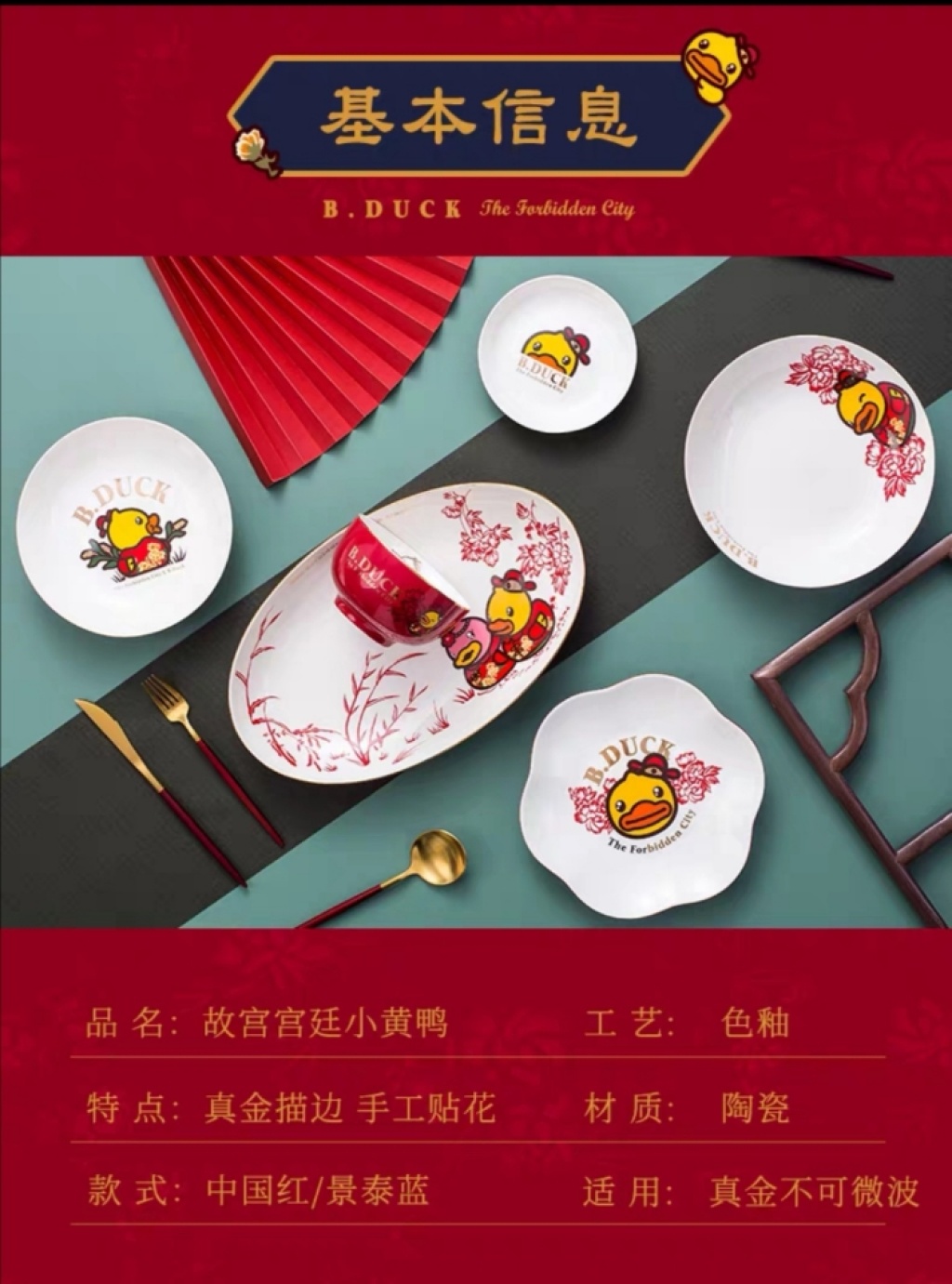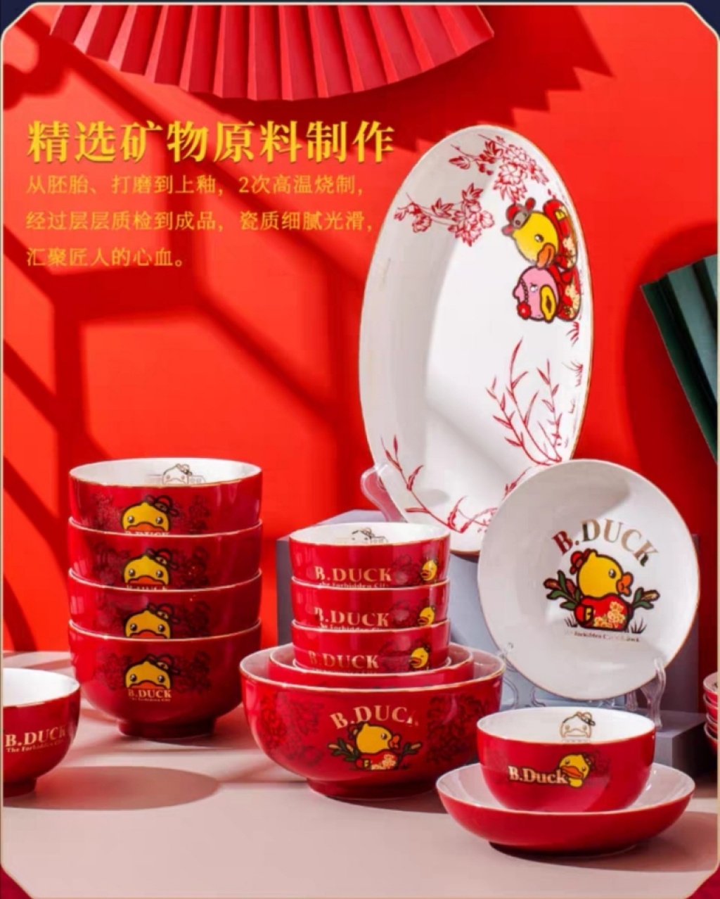 b.duck small yellow duck x palace museum's cultural and creative products joint name chinese style bowl ceramic household plate and bowl ceramic tableware exquisite