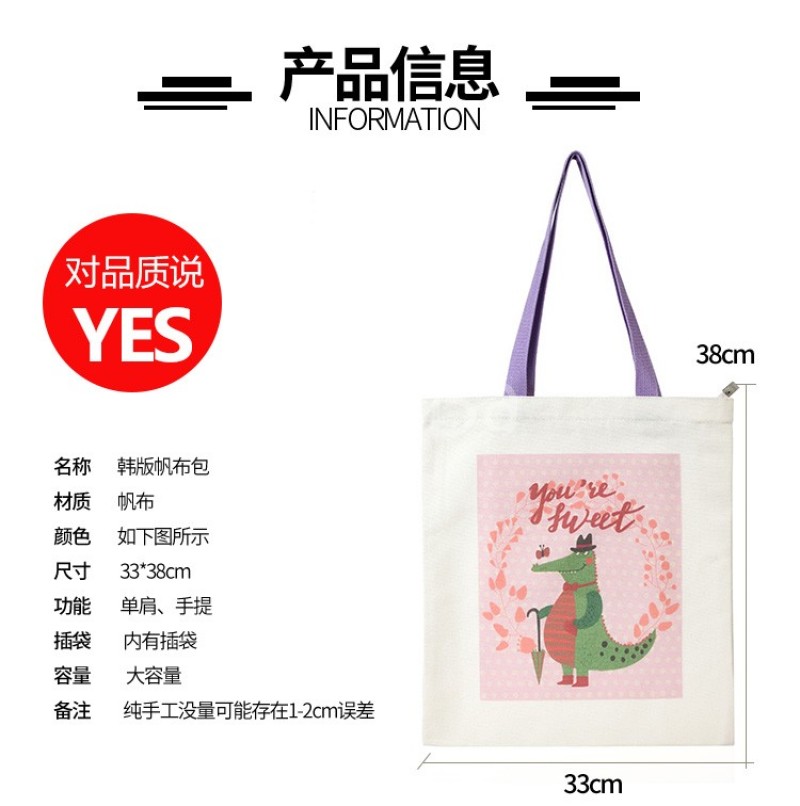 About Product:Material: 12 oz canvas type: shoulder bag usage: shoulder bag handbag size: 33 * 38CM customizable size pattern: Customizable