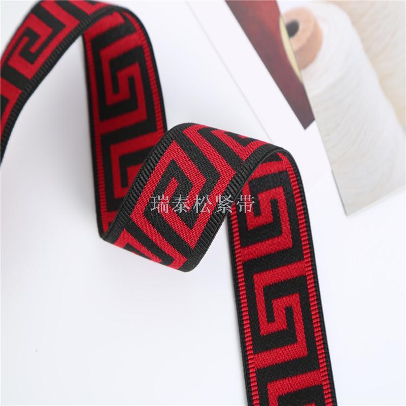 factory direct sales double-sided jacquard inscription elastic band black and red striped elastic band