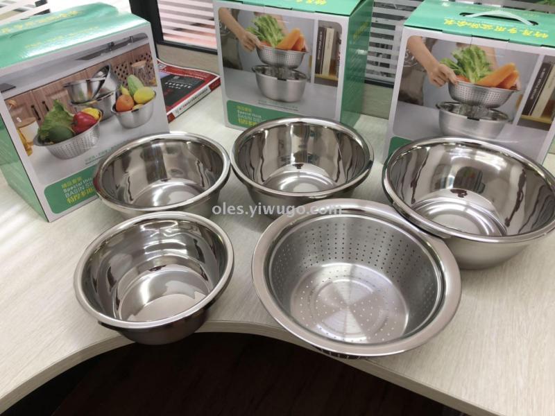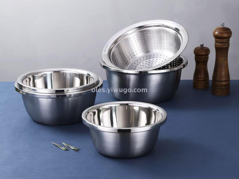 Thickened stainless steel rimless seasoning tank, non-magnetic European style cooking basin, polished taste bucket, multi-purpose basin for home use, and vegetable washing basin