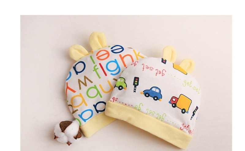 Ears and brim are the same color, available in pink, yellow, and blue.