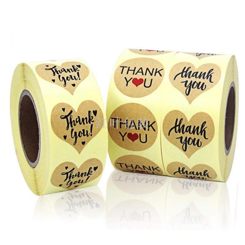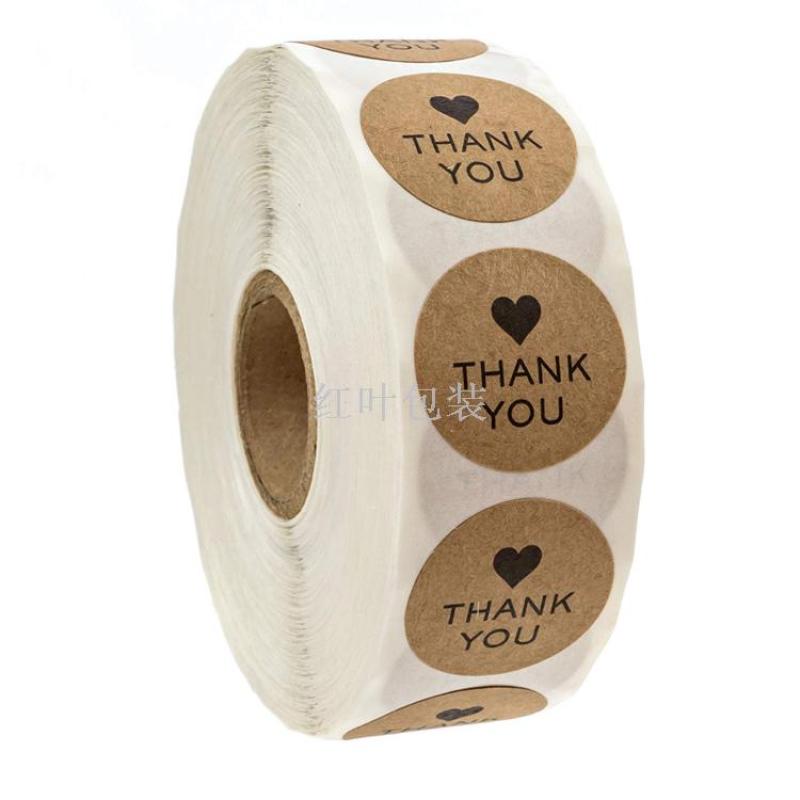 Wholesale custom round heart cowhide paper adhesive stickers THANK YOU labels