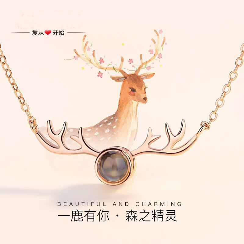 multi-zircon antlers titanium steel colorfast rose gold