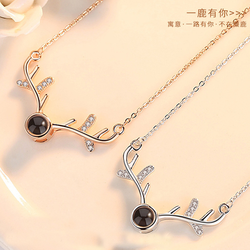 3 zircon antlers titanium steel colorfast rose gold