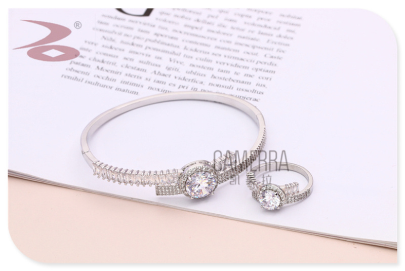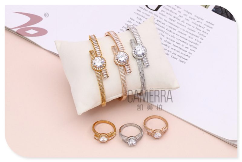 产品名称:简约水钻微镶工艺多色潮流铜质锆石手镯戒指套装 厂家现货直销