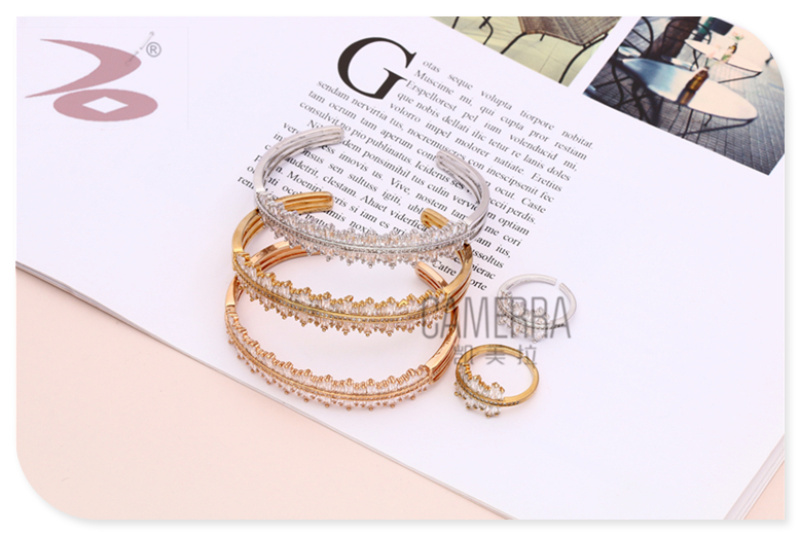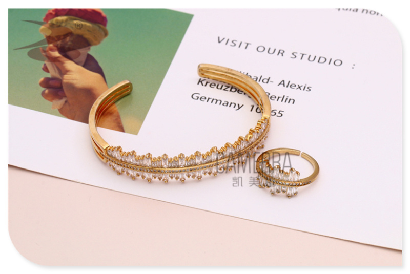 micro inlaid zircon goddess temperament niche graceful personality bracelet double-sided symmetrical advanced sense shape bracelet & ring set suit