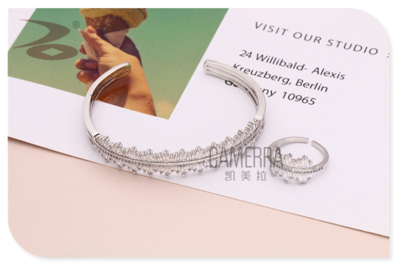 产品名称:微镶锆石女神范小众个性气质手环 双边对称高级感形手镯戒指套装