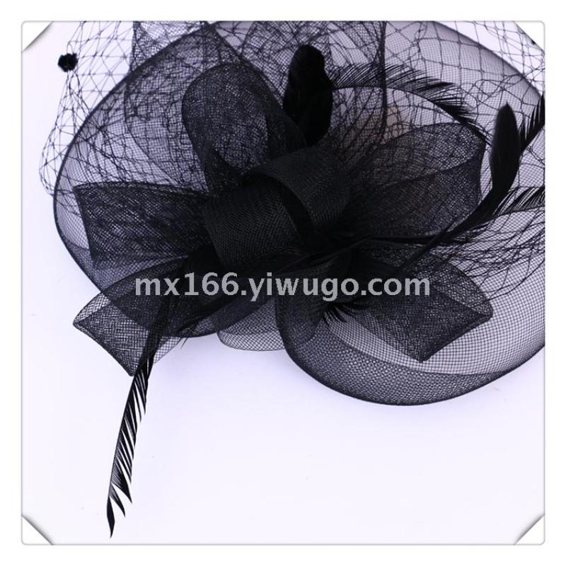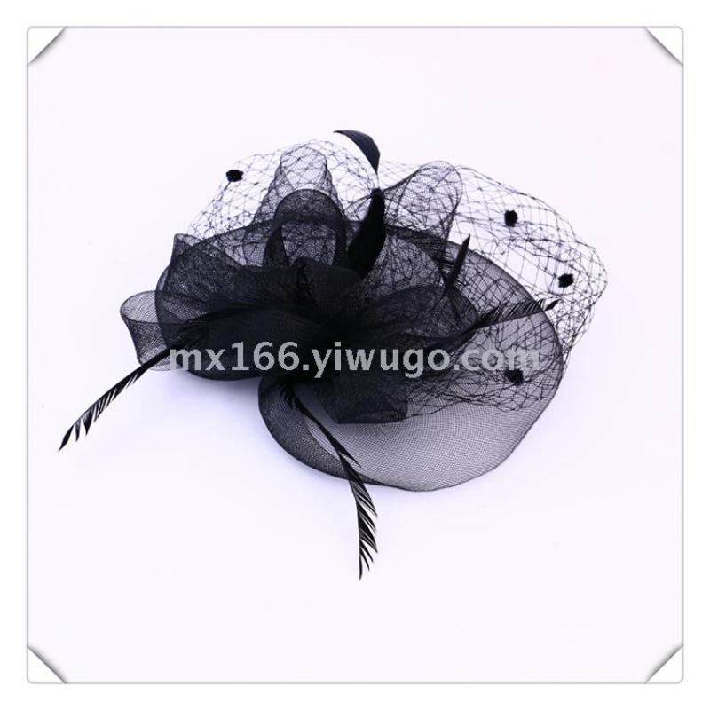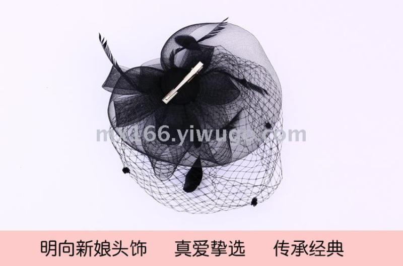Product Name: New Style Black Linen-like Net Headpiece with Embroidered Flowers Handcrafted Fashionable and Simple Headwear Direct Sale from the Manufacturer