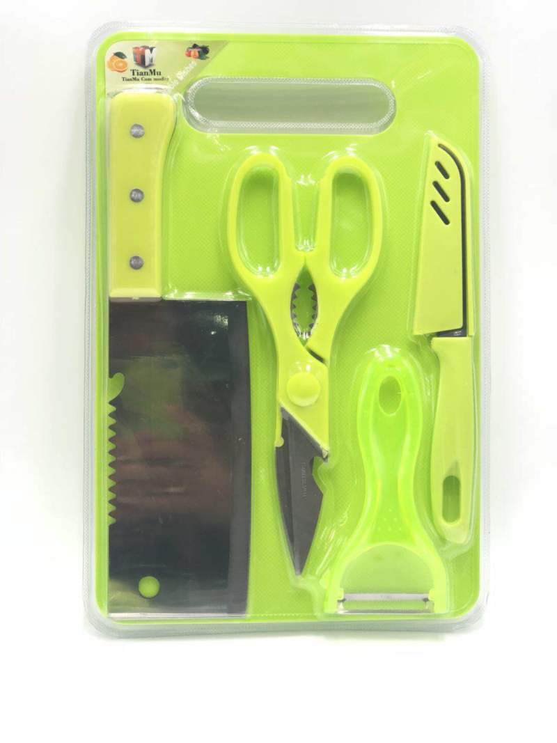 Tianmu Plastic Cutting Board Kitchen Knife Five-Piece Portable Non-Slip Cutting Board Pc Fruit Knife Scissors Set