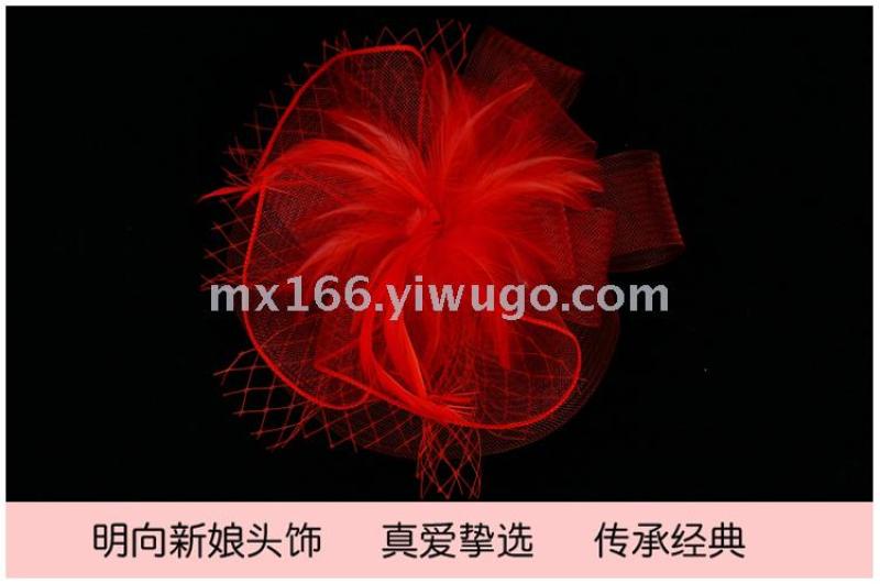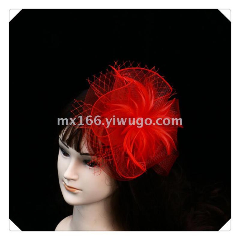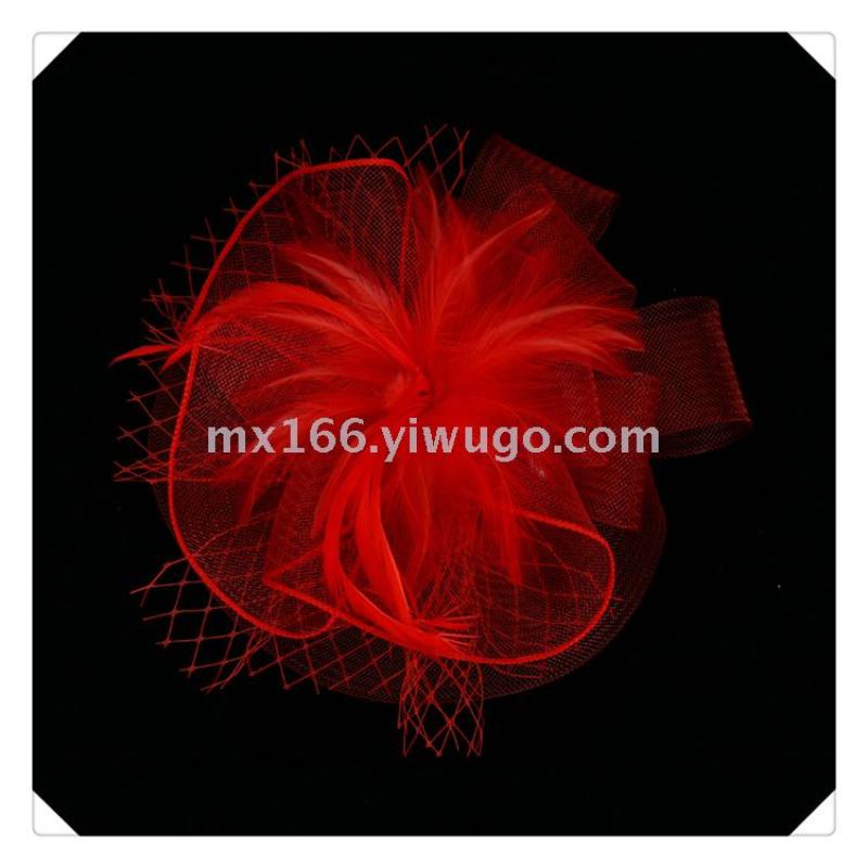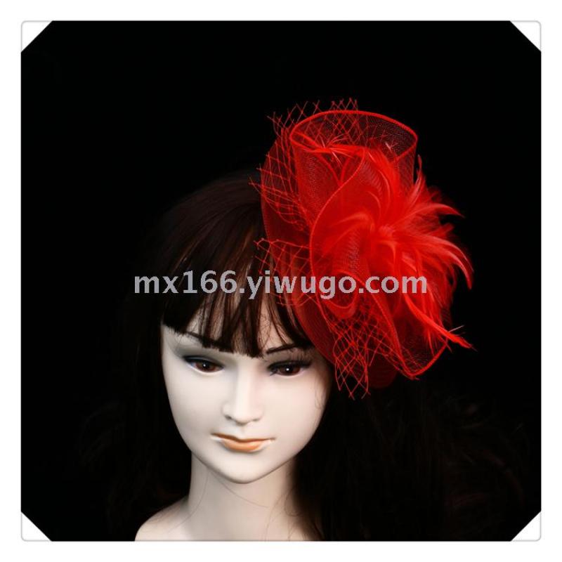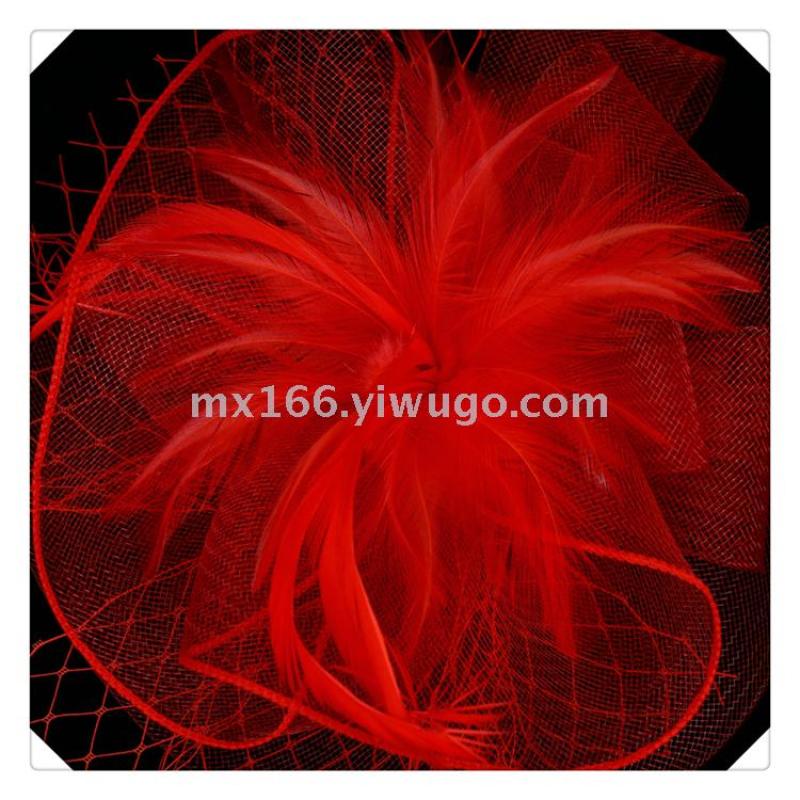 Product Name: Direct Sale from Manufacturer - New Style Red Netting Feather Decorated Elegant Lady Hat - British Style, Noble and Elegant