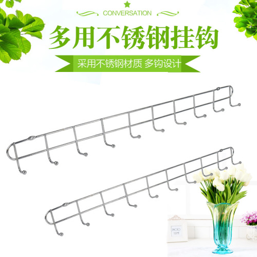 Hook Wall Hanging Stainless Steel Door Rear Wall Hook Punch Wall Hanger Wall-Mounted Coat Hook Hook Long Row Hook