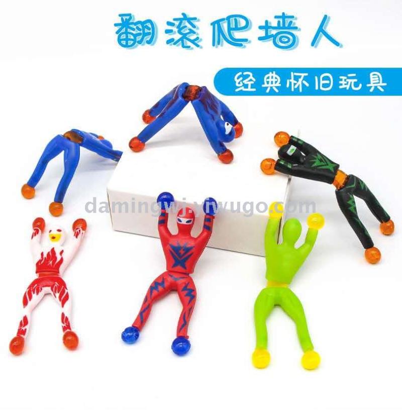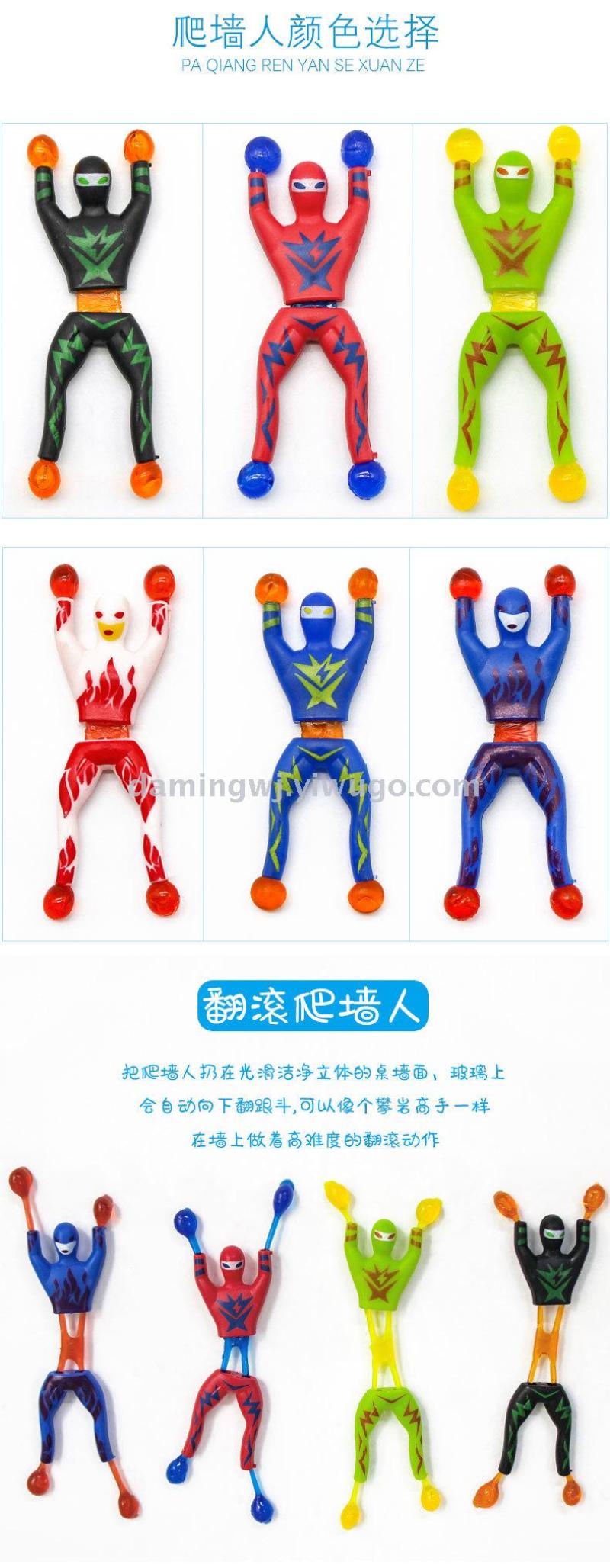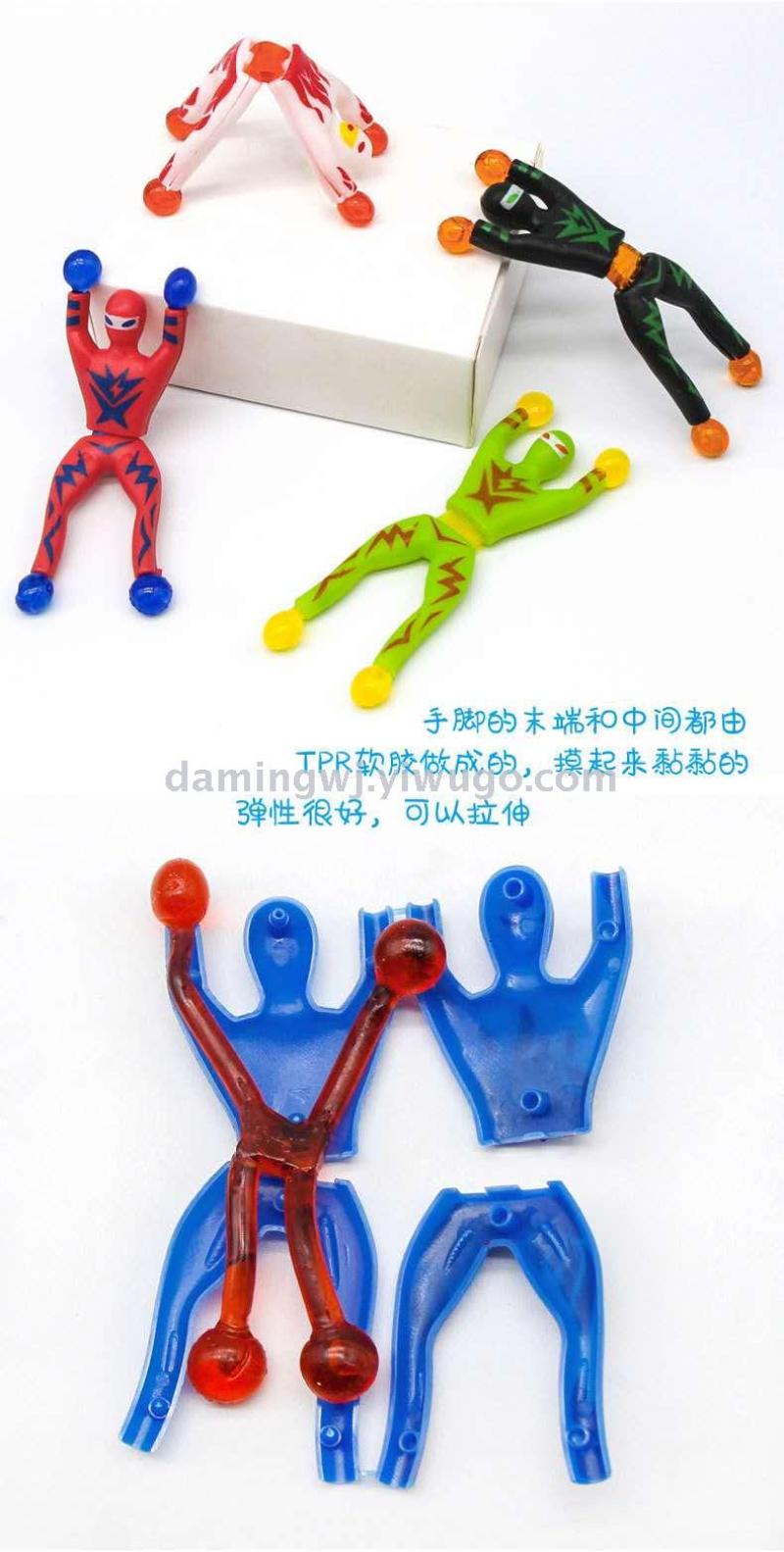 children's prizes wall climber small sticky spider hot funny trick flip head superman sticky suction card packaging