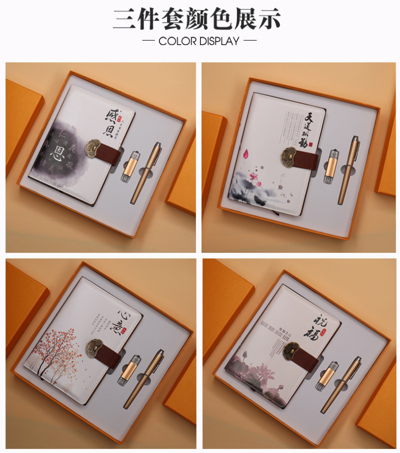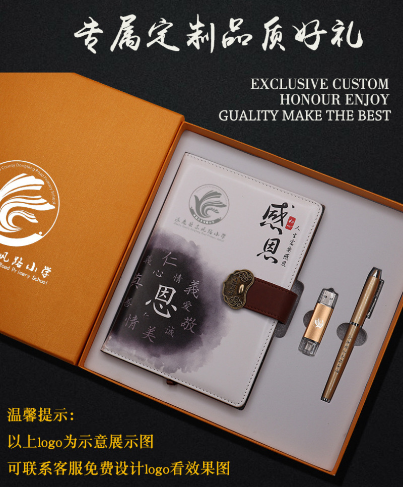 teacher's day gift a5 notebook metal u disk notepad high-end imitation leather business note customization gift set