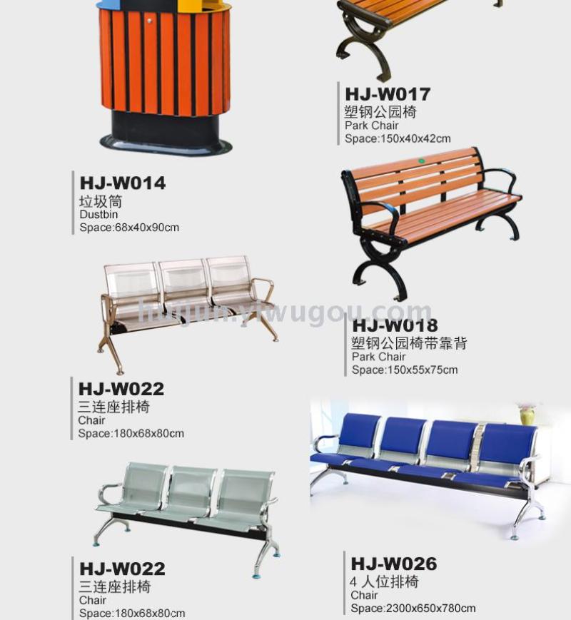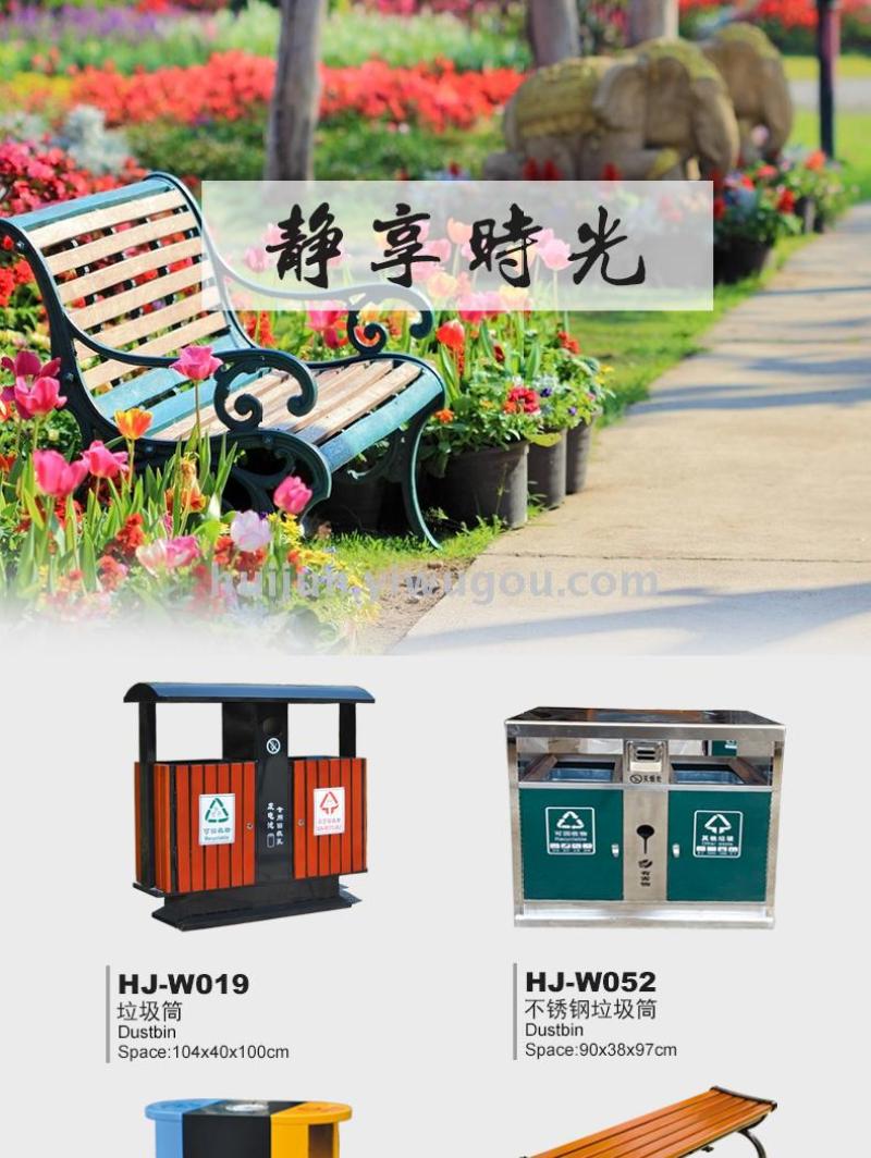 About Product:Brand: Hui Jun; Model Number: HJ-W016; Product name: Park chair; Specification: 120*55*75cm; Material: use high quality anticorrosive camphor pine, south pine, water qu wood, solid wood, chair leg USES cast iron, cast aluminum material, high quality south pine, wood thickness is 3-5 centimeters or so. The leg bracket is made of 1.2mm thick galvanized pipe and flat iron welded, after a series of standardized procedures such as grinding, polishing and plastic spraying. Two legs of the chair are fixed with two flat iron strips in the middle; Technology: electrostatic spraying + anti-corrosion treatment;