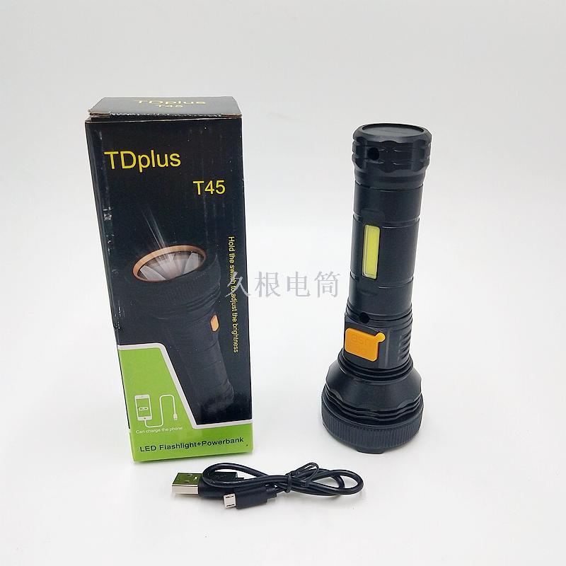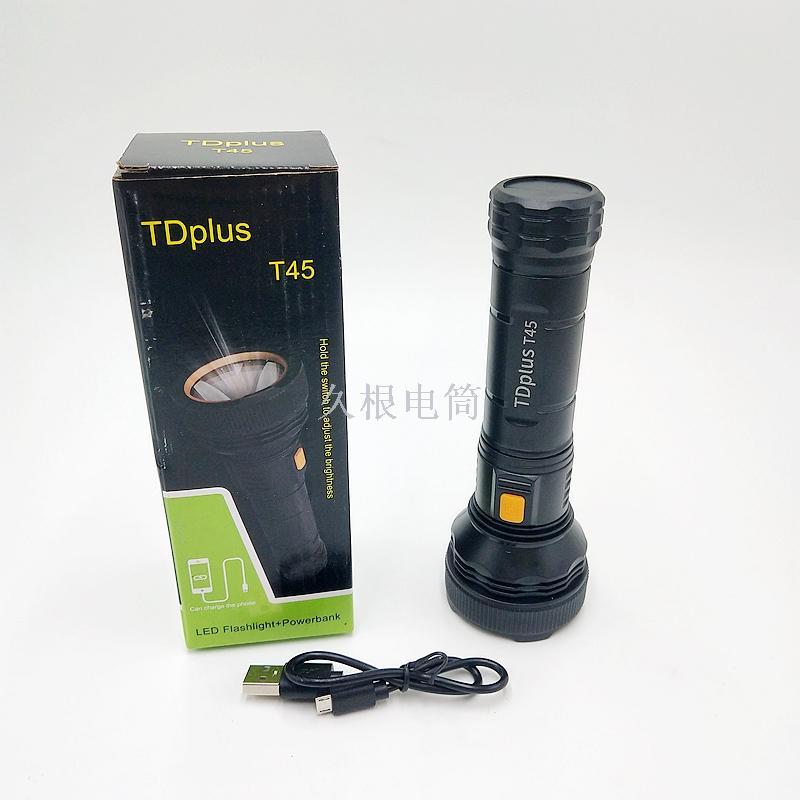 Long root Torch T45 home portable multi-functional rechargeable lithium battery flashlight