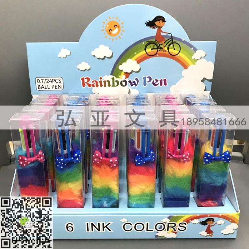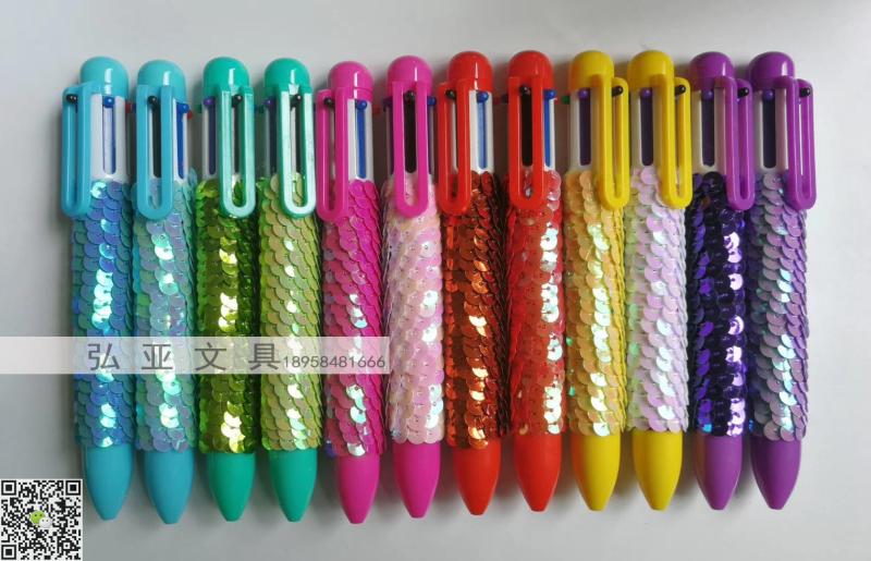 6-color ballpoint pen sequin pen plush pen craft pen can be customized various decorative pens hongya creative stationery