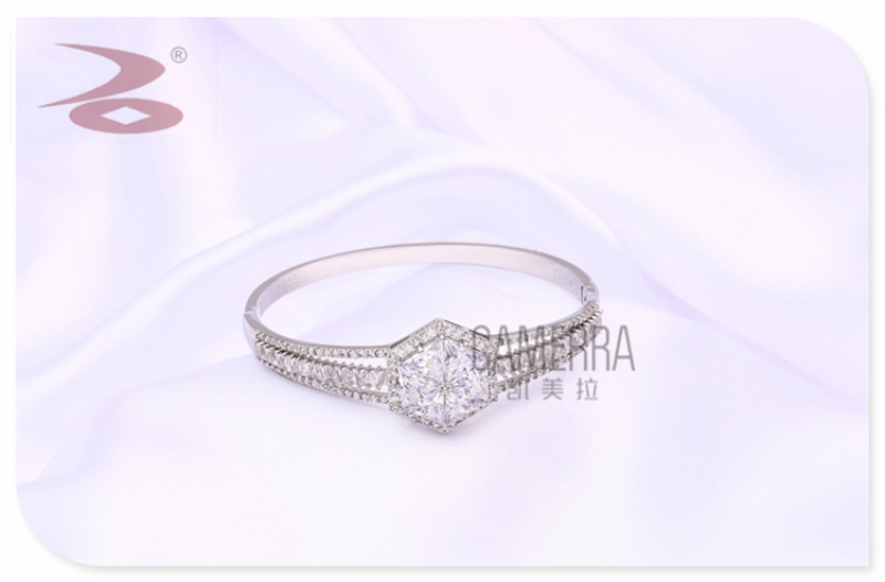 产品名称:六边形中置大颗粒水钻装饰高贵典雅女神范手环戒指套装 厂家直销