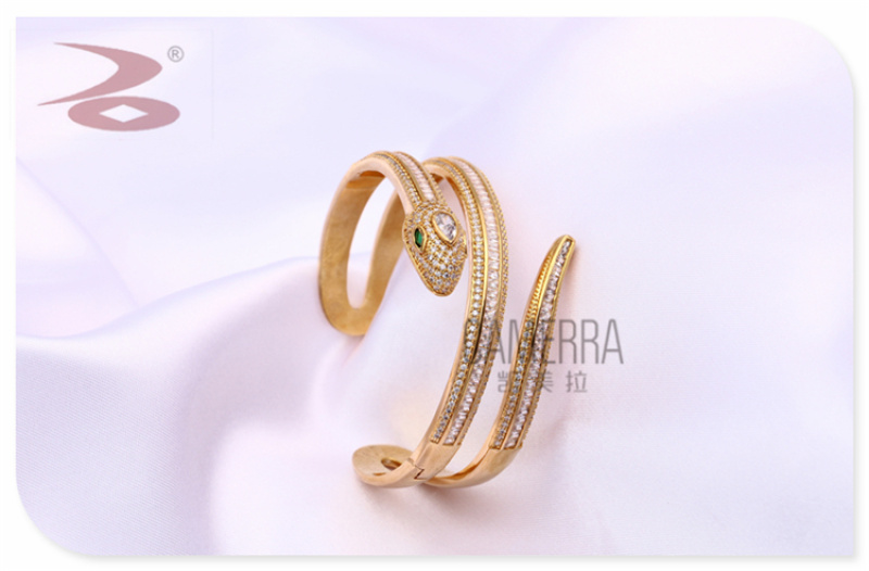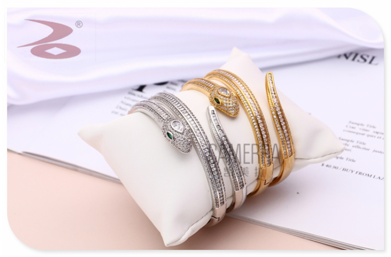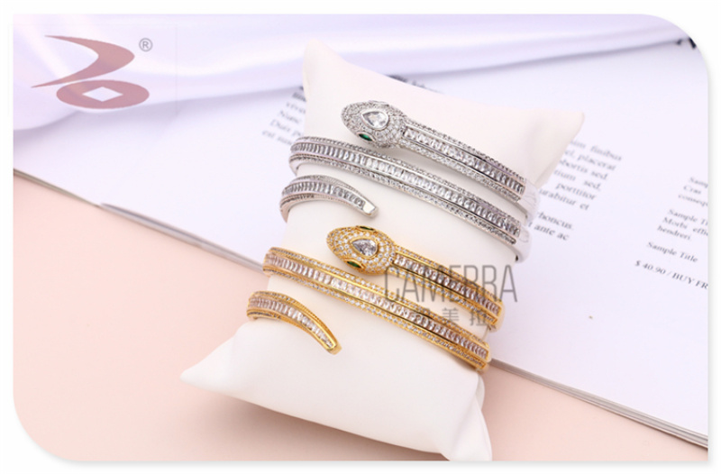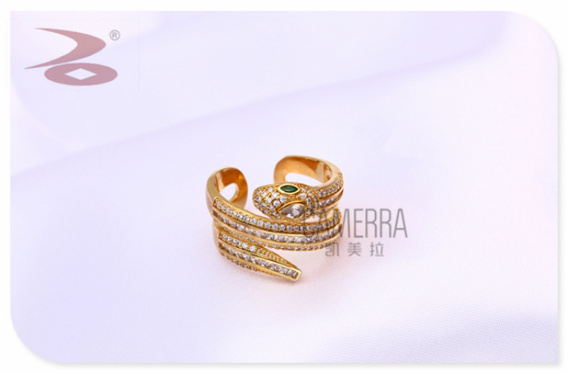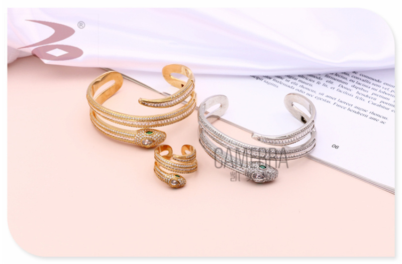产品名称:创意个性蛇形状蛇年生肖款水钻微镶工艺金银两色女士戒指手环套装
