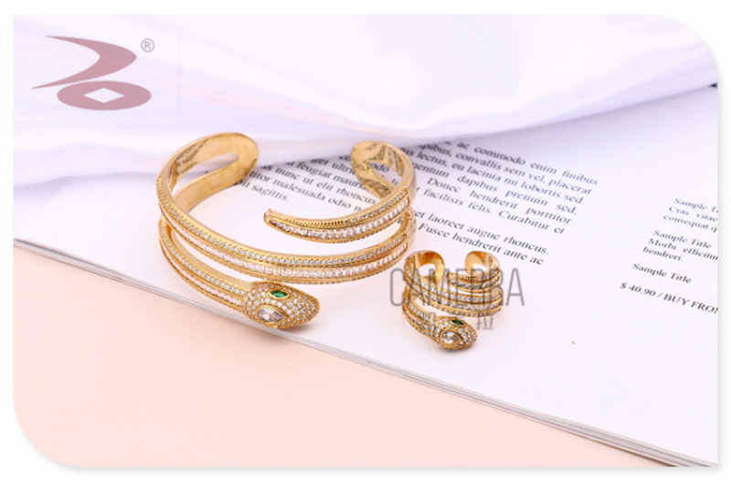 creative personality snake shape year of snake zodiac rhinestone micro-inlaid craft gold and silver two-color women's ring bracelet suit