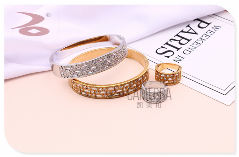产品名称:欧美风格时尚流行款气质简约森女系水钻微镶女士时装手环戒指套装