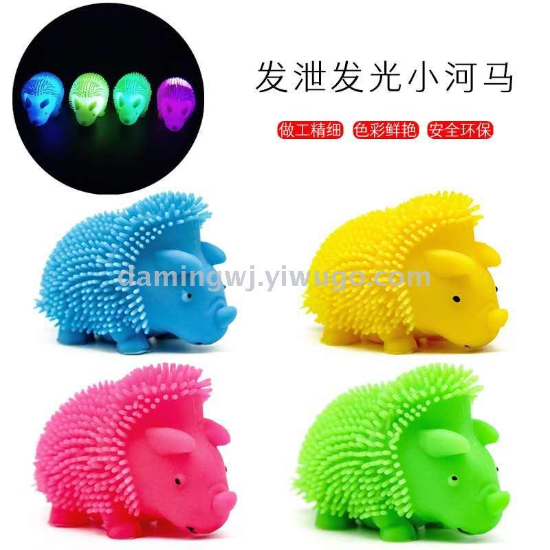 amazon hot sale luminous hairy ball tpr soft rubber elastic hippo compressable musical toy decompression vent ball