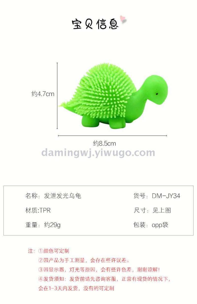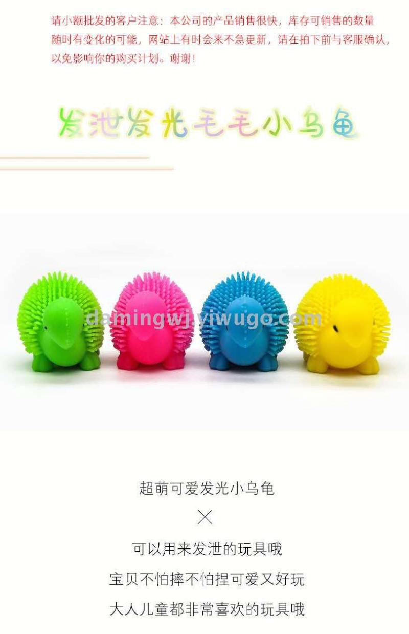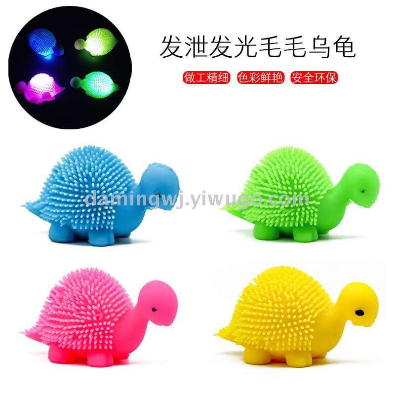 cross-border hot sale luminous hairy ball tpr soft rubber elastic turtle flash decompression squeezing toy decompression vent ball