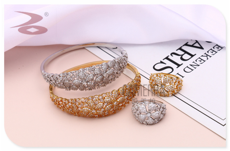 产品名称:流行欧美风格时尚气质清新森女系水钻微镶女士时装手环戒指套装