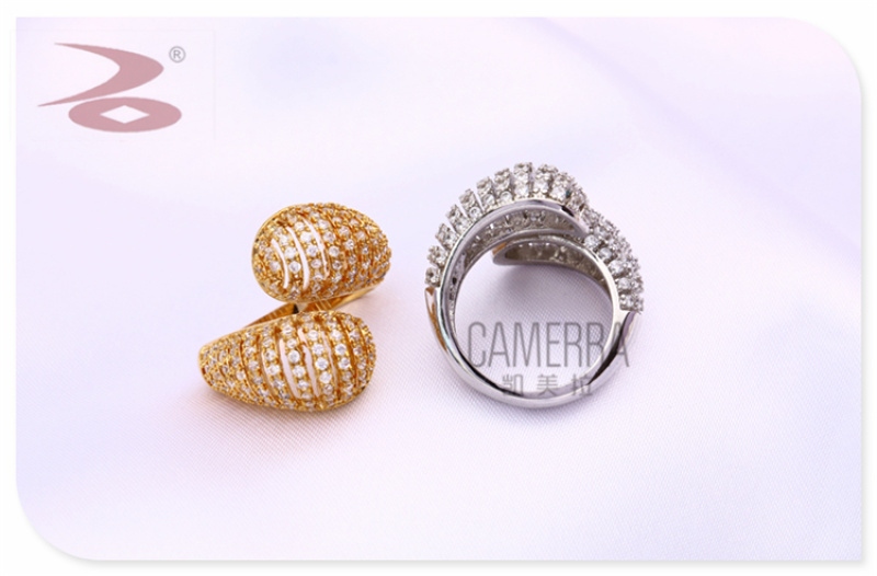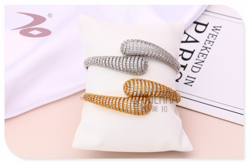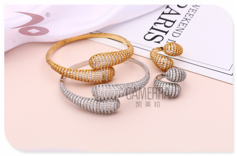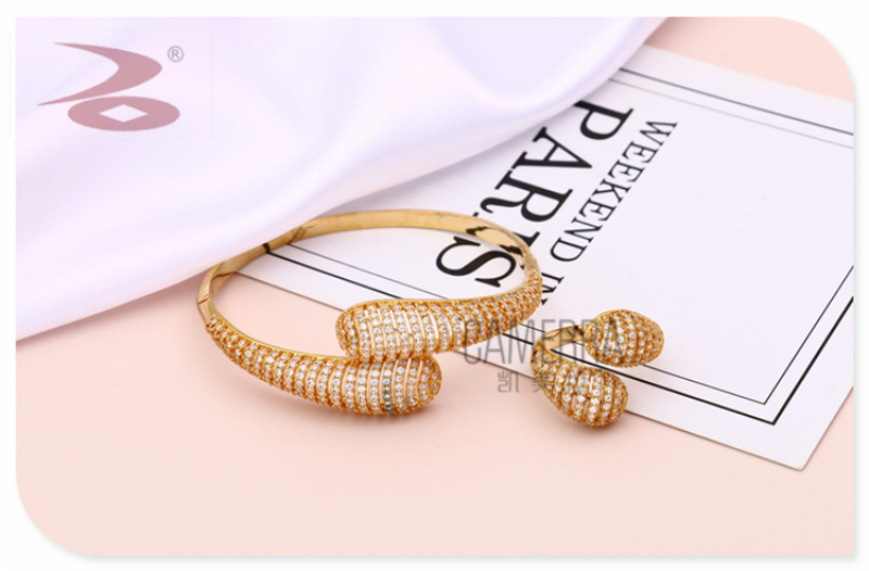 产品名称:两端水滴形水钻微镶镂空长条窄幅铜锆简约手环戒指套装 厂家直销